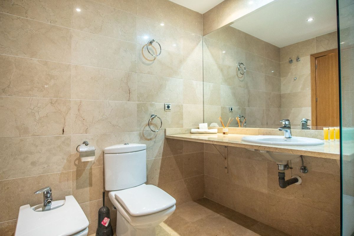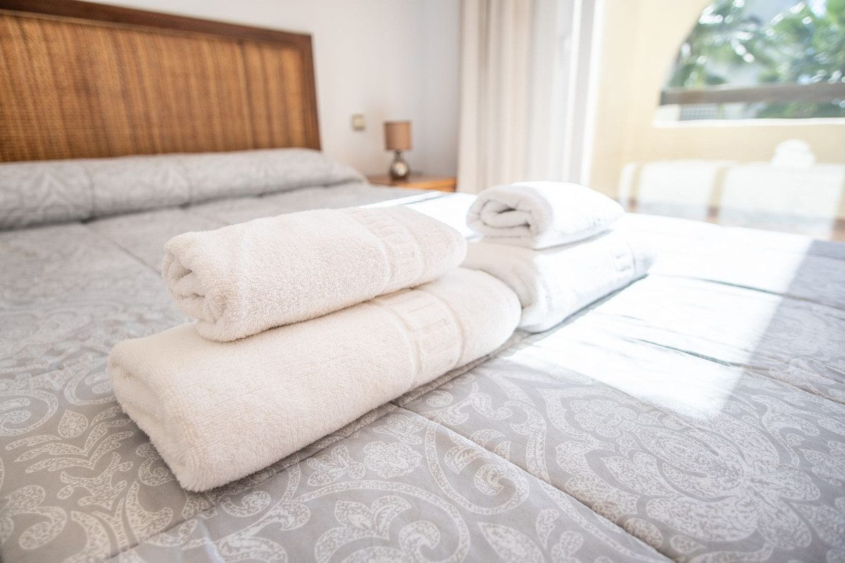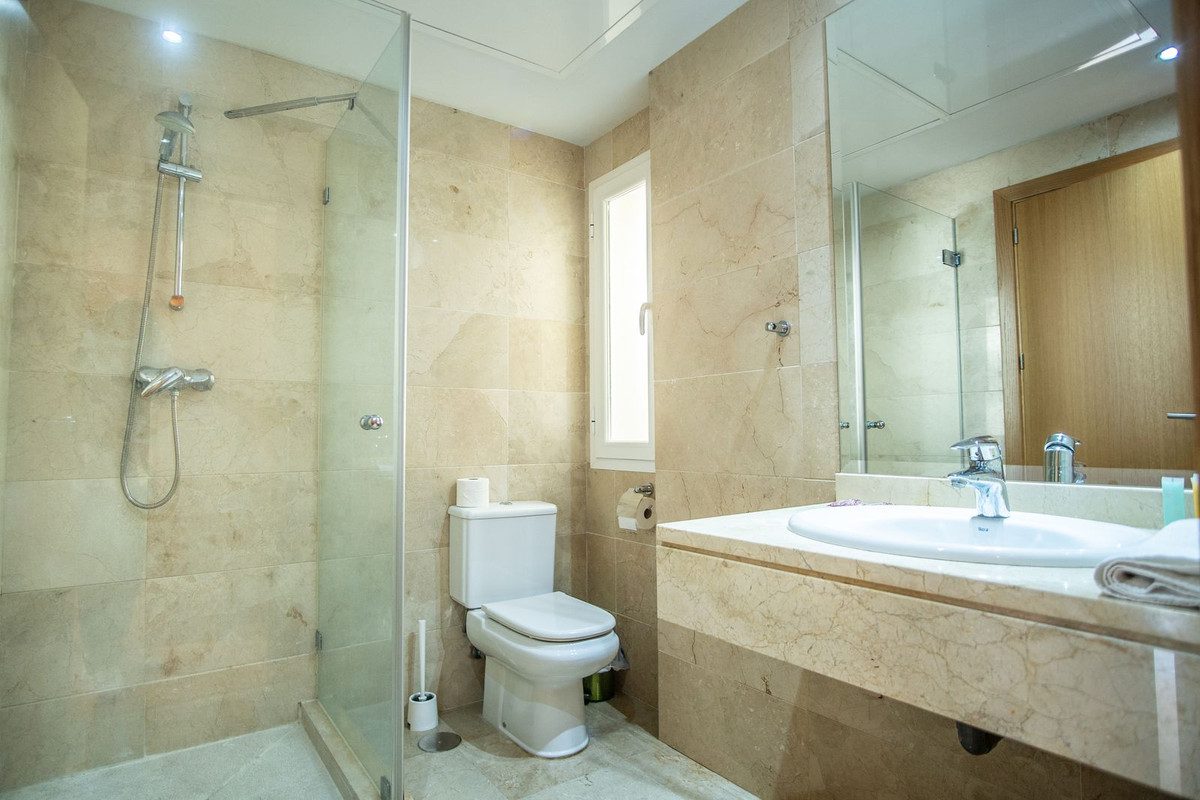 **Luminoso apartamento con gran terraza en la Nueva Milla de Oro**Descubre este encantador apartamento de 2 dormitorios y 2 baños, ubicado en una de las zonas más demandadas de la Costa del Sol: la reconocida Nueva Milla de Oro. Situado en la primera planta de un edificio amplio y bien cuidado, esta propiedad destaca por su excelente orientación sureste, que le garantiza una abundante luz natural durante todo el día.Uno de sus mayores atractivos es su amplia terraza, perfecta para relajarse, tomar el sol o disfrutar de agradables veladas al aire libre durante todo el año, gracias al maravilloso clima mediterráneo.En el interior, la vivienda ofrece un espacioso salón-comedor, ideal para compartir momentos en familia o con amigos. Los dormitorios son grandes y luminosos, ambos con armarios empotrados que optimizan el espacio. La cocina, independiente y funcional, incorpora una práctica zona de lavadero que aporta comodidad al día a día.Los dos baños completos están elegantemente revestidos en mármol, y la vivienda dispone de aire acondicionado por conductos, garantizando confort tanto en verano como en invierno.El residencial en el que se encuentra cuenta con una espectacular piscina comunitaria rodeada de extensos jardines y agradables zonas comunes, donde disfrutar del aire libre y el estilo de vida relajado propio de la Costa del Sol.A pocos minutos de prestigiosos campos de golf como El Paraíso Golf Club, Atalaya Golf y Guadalmina Golf, y a solo 10 km de Puerto Banús, 5 km de San Pedro de Alcántara y 15 km del centro histórico de Marbella, esta propiedad ofrece una ubicación inmejorable. Con acceso a transporte público, supermercados, servicios y espacios verdes, es ideal tanto como residencia habitual como inversión con excelente potencial de alquiler.~