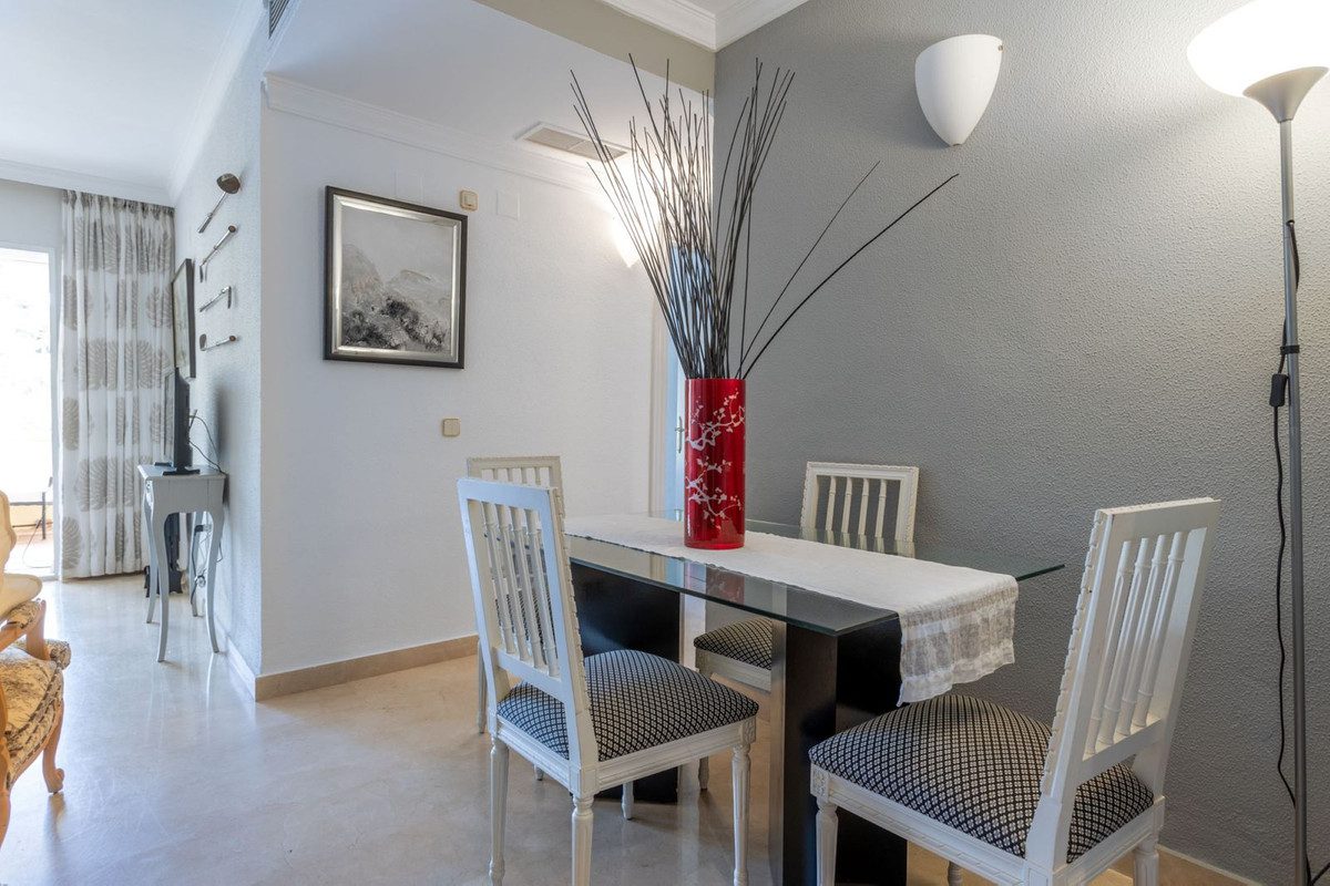 Descubre tu nuevo hogar en La Quinta Golf! Este encantador apartamento en primera planta, ubicado en una tranquila urbanización cerrada, es el refugio perfecto para quienes buscan comodidad y estilo. Con 124 m² construidos, cuenta con un amplio salón-comedor que se abre a una terraza cubierta, donde podrás disfrutar de vistas parciales al campo de golf. La cocina está completamente equipada. El dormitorio principal en-suite y el segundo dormitorio, también con baño, tienen acceso directo a la terraza, creando un ambiente luminoso y acogedor. Además, la urbanización ofrece hermosos jardines y dos piscinas comunitarias para relajarte bajo el sol.Situado a escasa distancia del lujoso hotel 5* Westin de La Quinta y a solo 5 minutos en coche de San Pedro de Alcántara, este piso combina la tranquilidad de la vida residencial con la cercanía a todos los servicios. ¡No dejes pasar la oportunidad de vivir en este maravilloso lugar! Incluye parking dentro de la urbanización . ¡Ven a verlo y enamórate!~