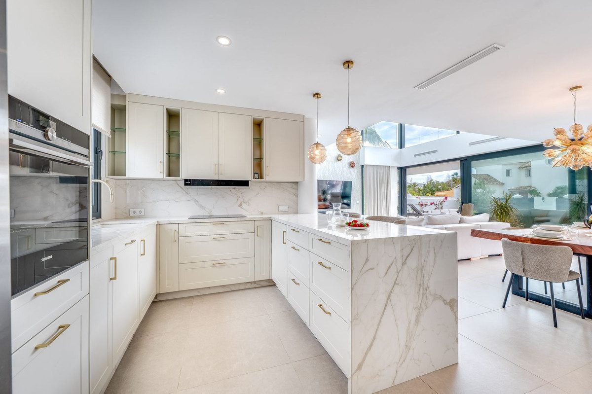 Bienvenidos a una joya arquitectónica de reciente construcción ubicada en la exclusiva urbanización Montecarlo de San Pedro de Alcántara. Esta elegante villa de 5 dormitorios, con una superficie construida de más de 786 m² distribuidos en tres niveles perfectamente diseñados, combina diseño vanguardista con la calidez del estilo mediterráneo — a tan solo unos pasos de la playa y del animado centro urbano.Acceda a interiores diáfanos y luminosos, con techos de doble altura y grandes ventanales correderos que difuminan los límites entre el interior sofisticado y la serenidad del exterior. El corazón de la vivienda es un impresionante salón conectado a una cocina gourmet con acabados en mármol y un comedor a medida que se abre a una terraza soleada.En la planta superior, la suite principal ofrece un refugio de tranquilidad con sala privada, vestidor y un baño tipo spa. Cada dormitorio ha sido diseñado para ofrecer privacidad y confort.El sótano se convierte en un santuario privado de bienestar y entretenimiento — con cine en casa, un amplio gimnasio con paredes espejadas, sauna y zonas de relax. Una parte del sótano fue originalmente concebida como garaje expositivo, e incluye estructura preparada para instalar un elevador de coches, lo que permite reconvertir el espacio en una galería de automóviles o almacenamiento de vehículos de lujo. Actualmente, se disfruta como zona recreativa para niños — ideal para familias.En el exterior, destaca una piscina climatizada de agua salada con función jacuzzi, y un comedor al aire libre perfecto para disfrutar de cenas bajo las estrellas.Esta vivienda cuenta con prestaciones de alta gama como calefacción por suelo radiante, climatización Daikin por zonas y sistema de alarma integrado.Ubicada a escasos minutos de colegios internacionales, los mejores campos de golf y Puerto Banús, Villa Essence no es solo una casa — es un estilo de vida.~