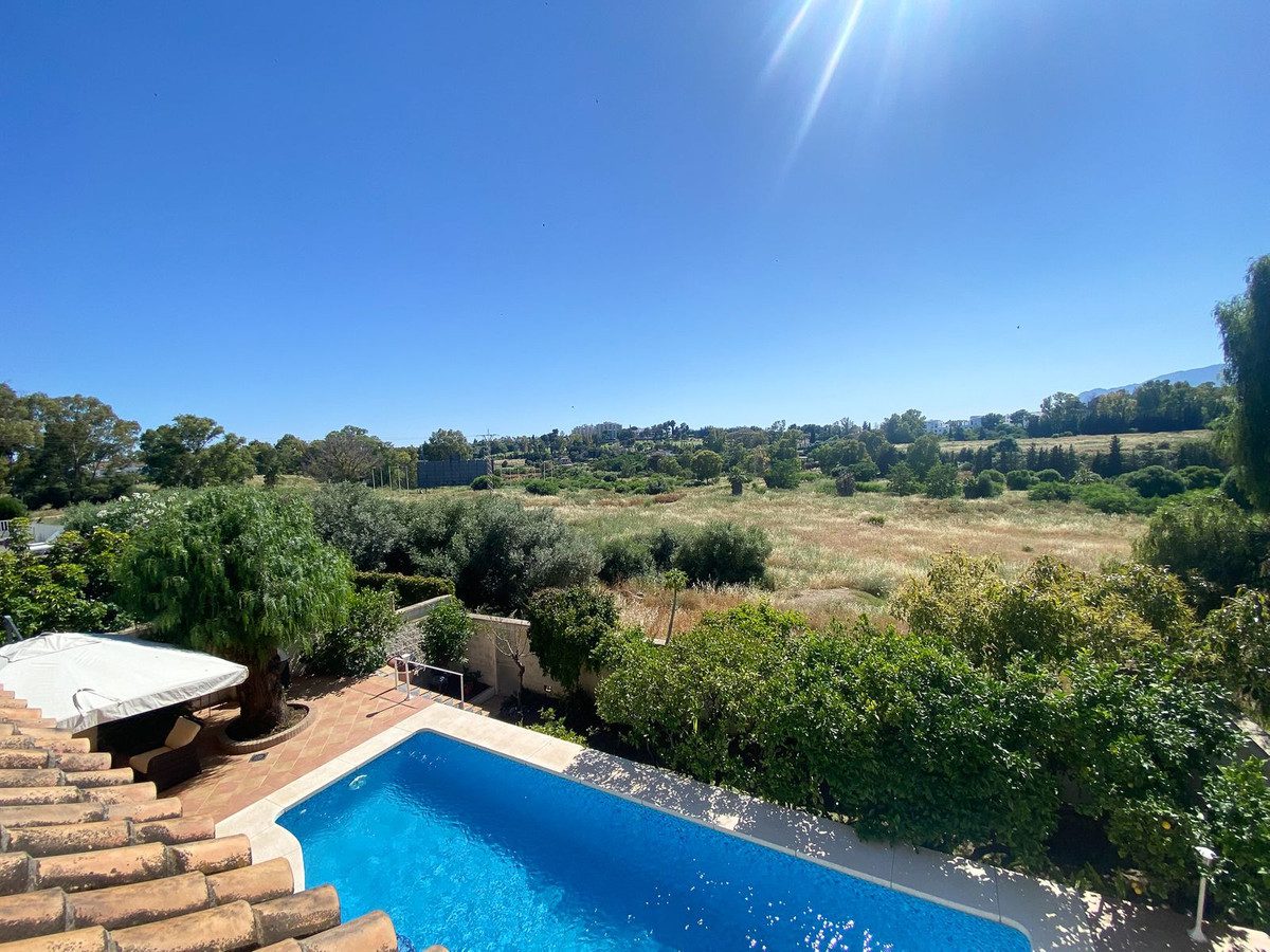 Esta villa en Guadalmina Alta combina el encanto de la arquitectura andaluza con comodidades modernas en una ubicación tranquila pero muy bien conectada a solo 5 minutos de San Pedro y 3 de la A7 con vistas abiertas a la Sierra de Ronda y Sierra Bermeja El jardín ofrece privacidad vegetación madura y una gran piscina rodeada de terraza antitérmica además de zonas de descanso con toldos iluminación nocturna árboles frutales y espacio para huerto urbano o vertical ideal tanto para relajarse como para recibir invitados El interior es luminoso y elegante con dos salones amplios uno con chimenea techos altos suelos de mármol y grandes ventanales La cocina está totalmente equipada y todas las habitaciones cuentan con armarios muchos empotrados y salida a terrazas El comedor y el porche son perfectos para cenas al aire libre La propiedad dispone de pozo comunitario paneles solares para agua caliente sistema de natación contracorriente cámaras de seguridad rejas en ventanas y aire acondicionado con bomba de calor Es una residencia única para quienes buscan confort privacidad y conexión con la naturaleza sin renunciar a la cercanía de los servicios en Marbella~