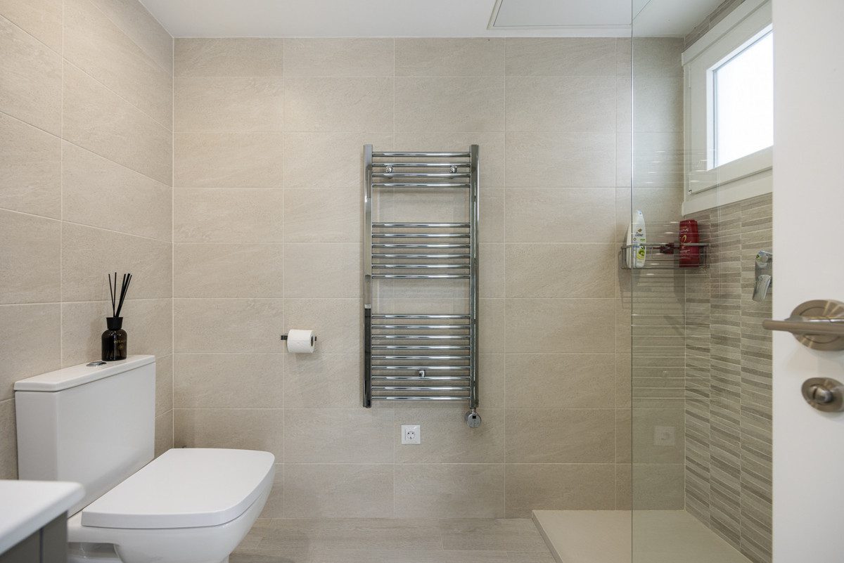 Esta impresionante casa adosada, recientemente reformada a los más altos estándares, combina el diseño contemporáneo con lujoso confort. Ofrece tres amplios dormitorios y dos baños muy bien terminados, junto con un aseo de invitados adicional, esta propiedad está diseñada para la vida moderna. El dormitorio principal cuenta con un baño en suite con calefacción por suelo radiante, mientras que el baño de invitados también cuenta con este lujoso toque.El hogar se baña en luz natural gracias a su orientación suroeste, asegurando interiores luminosos y ventilados durante todo el día. El amplio solárium ofrece impresionantes vistas al mar, perfecto para relajarse o entretener. La propiedad incluye un jardín privado y de fácil mantenimiento orientado al suroeste, ideal para disfrutar del clima mediterráneo.En su interior, el adosado está terminado con elegantes suelos de madera de efecto cerámico y ventanas de doble acristalamiento con funcionalidad de inclinación y vuelta. La cocina totalmente equipada es elegante y práctica, complementando el salón de planta abierta. Otras características incluyen aire acondicionado, armarios empotrados, cortinas de vidrio y un sistema de alarma. La propiedad es parte de una comunidad segura y cerrada con seguridad las 24 horas, ofreciendo paz mental.Los residentes tienen acceso a exuberantes jardines tropicales maduros y a una piscina comunitaria, proporcionando un ambiente tipo resort. El adosado está convenientemente situado cerca de las comodidades, escuelas, campos de golf y la playa, con impresionantes vistas al mar y a la montaña realzando su atractivo. También está disponible un cómodo aparcamiento, lo que hace de este el hogar perfecto para aquellos que buscan una mezcla de estilo, comodidad y comodidad.~