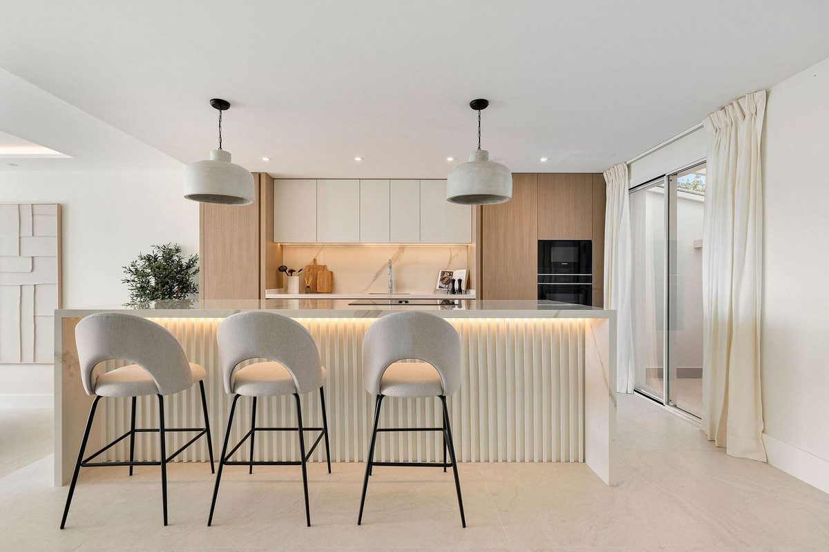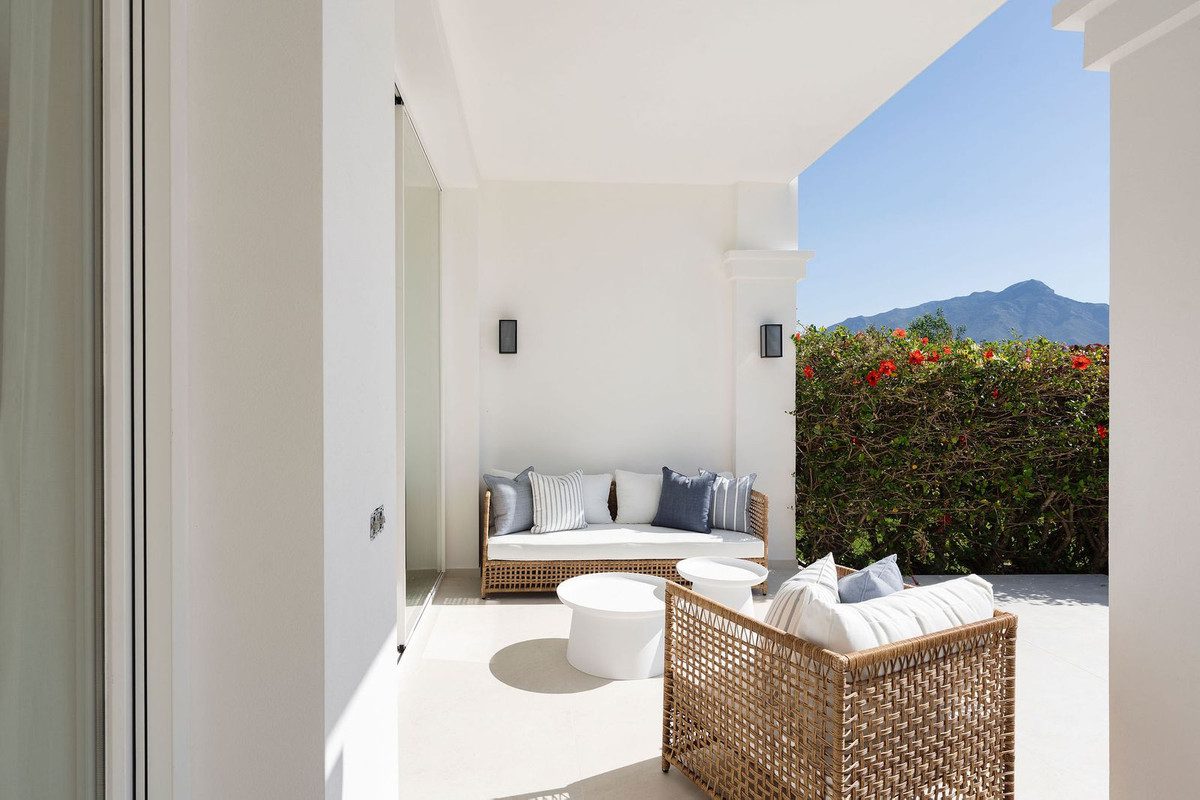 Una casa adosada exquisitamente reformada, ubicada en la popular urbanización El Mirador de La Quinta en Benahavís. Al entrar, le recibe una gran luminosidad, techos altos y vistas al mar a través de las puertas correderas de la terraza. La cocina americana, hecha a medida, conduce al espacioso salón-comedor y a la terraza cubierta con acceso a los jardines comunitarios, que ofrecen impresionantes vistas al sureste, al mar y a la montaña. En la primera planta, dispone de 3 dormitorios y 3 baños. El dormitorio principal cuenta con un amplio vestidor, terraza privada y un amplio baño en suite con impresionantes vistas. En la tercera planta, se encuentra el cuarto dormitorio en suite con acceso a 2 terrazas, también con impresionantes vistas. La casa adosada ha sido completamente reformada y equipada con materiales de alta calidad. La decoración interior y la paleta de colores han sido cuidadosamente seleccionadas, creando una atmósfera elegante y cálida. Una casa adosada verdaderamente magnífica en una ubicación muy popular.~