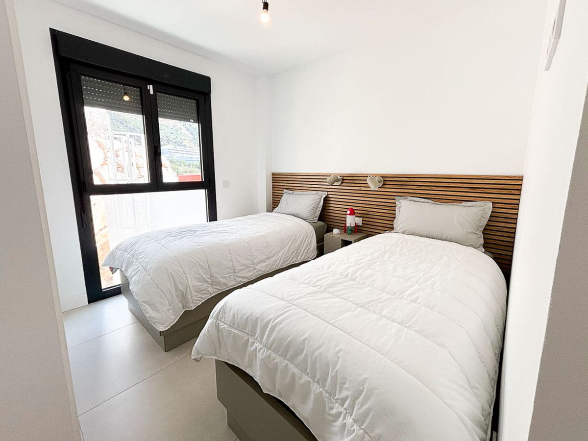 Situado en una residencia de alto standing en las colinas de Fuengirola, en el complejo Higuerón, este apartamento contemporáneo de 127 m² ofrece un estilo de vida cómodo y privilegiado entre el mar y la montaña. A tan solo 20 minutos del Aeropuerto Internacional de Málaga y 30 minutos de Marbella, disfruta de una ubicación estratégica cerca de numerosas comodidades: el centro comercial Miramar, el Bioparc (zoológico de Fuengirola), restaurantes, colegios, supermercados y varias playas reconocidas a solo unos minutos en coche (Playa del Castillo a 5 min, Playa de Fuengirola a 6 min, Playa de Los Boliches a 7 min, Playa de Carvajal a 10 min).El apartamento cuenta con tres dormitorios, incluida una suite principal con baño privado y vestidor, un dormitorio doble con amplios armarios empotrados y una habitación con dos camas y un gran armario empotrado. Dispone de dos baños modernos con duchas a ras de suelo que ofrecen confort y funcionalidad. La zona de estar se compone de una cocina americana totalmente equipada, conectada con un salón-comedor luminoso y acogedor. Todo ello da acceso a una terraza de 24 m² parcialmente cubierta, con agradables vistas al mar y a las montañas cercanas. Aunque no son totalmente abiertas, ofrecen una agradable sensación de amplitud.Se vende completamente amueblado con mobiliario contemporáneo, nuevo y en excelente estado, listo para entrar a vivir. También incluye dos plazas de aparcamiento subterráneo y un trastero espacioso, perfectamente aislado, ubicado al nivel de los garajes.La residencia es tranquila, segura, muy bien mantenida y ofrece acceso exclusivo a un complejo hotelero vecino mediante una tarjeta de socio. Este acceso permite disfrutar de servicios de alta gama: gimnasio totalmente equipado, pistas de tenis y pádel, piscinas interior y exterior, así como un área de bienestar con spa, sauna y otros servicios.Esta propiedad representa una oportunidad única, ideal como residencia principal o secundaria, o como inversión de alquiler de alta calidad en una de las zonas más demandadas de la Costa del Sol.~
