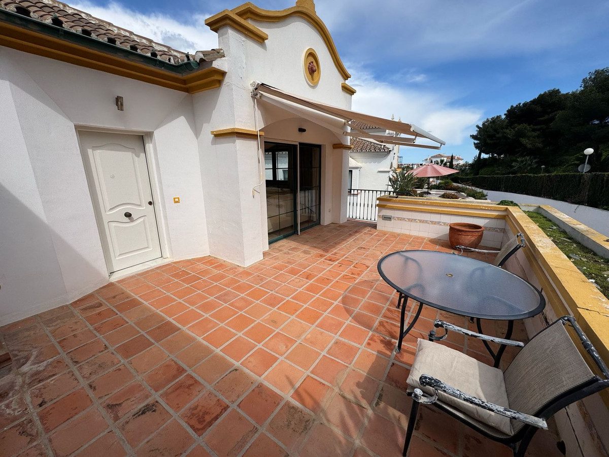 Encantadora Casa Adosada de Tres Dormitorios en Riviera del SolDescubre esta hermosa casa adosada de tres dormitorios en una exclusiva comunidad cerrada en Riviera del Sol, Mijas Costa. Ubicada a pocos minutos a pie de la playa y de todos los servicios, esta propiedad combina comodidad y una excelente ubicación. La comunidad ofrece preciosos jardines, dos piscinas comunitarias, una de ellas climatizada, ideales para disfrutar todo el año. En el interior, la vivienda cuenta con un luminoso salón-comedor de concepto abierto con chimenea y acceso a una amplia terraza con vistas panorámicas a la montaña, al campo de golf y a la piscina. La planta inferior alberga la suite principal con salida a un jardín privado, dos dormitorios para invitados y acceso al garaje doble privado. Otras características incluyen una cocina totalmente equipada, aseo de cortesía, aire acondicionado frío/calor, persianas eléctricas y armarios empotrados. Una excelente oportunidad de reforma en una tranquila y bien comunicada comunidad residencial.~