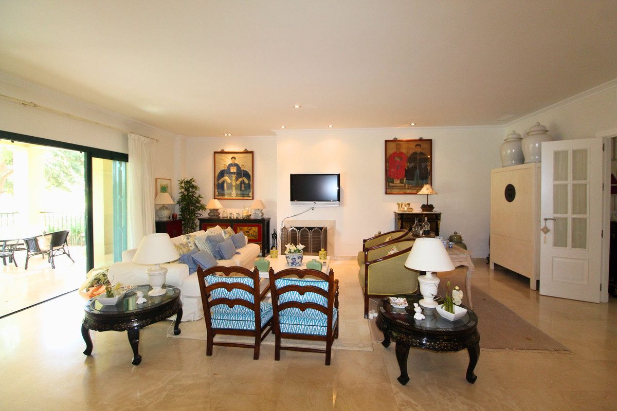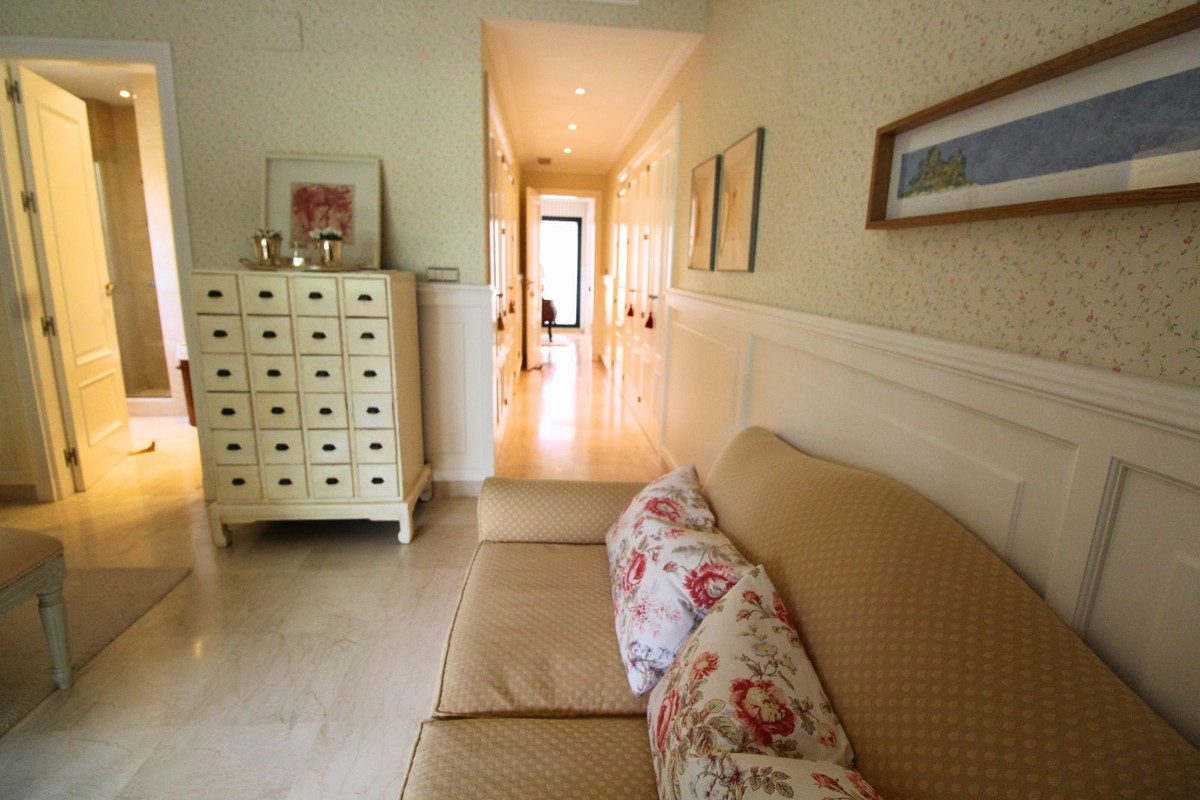 Este precioso apartamento de 2 dormitorios y 2 baños se encuentra en una ubicación privilegiada en primera línea de golf, dentro de una de las comunidades más prestigiosas de la región. Ambos dormitorios cuentan con baños en suite, y además dispone de un aseo de cortesía, ofreciendo mayor comodidad para las visitas. La propiedad ofrece un amplio salón-comedor con una acogedora chimenea, perfecta para relajarse, y dos terrazas independientes: una con acceso desde el salón y el dormitorio principal, y otra desde la cocina, ideales para disfrutar del aire libre a cualquier hora del día. Está equipada con aire acondicionado frío/calor y suelo radiante en los baños, lo que garantiza confort durante todo el año. Además, dispone de acceso por ascensor al garaje, donde encontrarás dos plazas de aparcamiento y un trastero privado.Los residentes disfrutan de zonas comunes ajardinadas con esmero, una piscina comunitaria, un gimnasio totalmente equipado y una pista de pádel. La urbanización está cerrada y cuenta con seguridad 24 horas, ofreciendo un entorno seguro y tranquilo.Si buscas la combinación perfecta de comodidad, calidad de vida y un entorno relajado, este apartamento es para ti.~