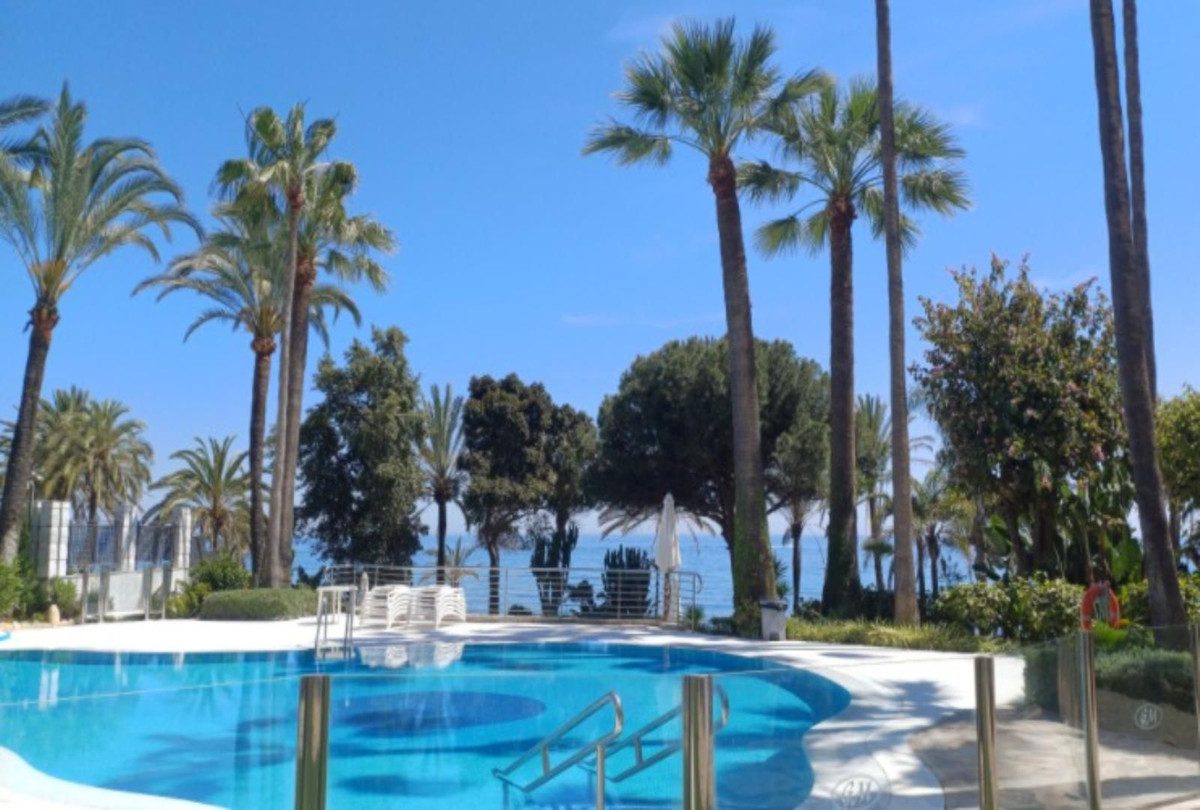 Exclusivo apartamento en el emblemático edificio Gran Marbella, en pleno corazón de la ciudad y en primera línea de playa. Una oportunidad única de vivir a tan solo 10 metros del Paseo Marítimo y la playa de la Fontanilla, rodeado de todos los servicios, restaurantes, boutiques y el animado centro histórico de Marbella.La vivienda cuenta con 133 m² construidos, distribuidos en 2 dormitorios, 2 baños (uno de ellos en suite), cocina independiente y un salón-comedor con acceso a una fantástica terraza con vistas a los preciosos jardines del prestigioso edificio Don Gonzalo.Gracias a su orientación noroeste, disfruta de sol durante la primavera y el verano, así como de un ambiente tranquilo y relajado.El complejo Gran Marbella ofrece vigilancia 24 horas, cámaras de seguridad, placas solares, acceso directo al paseo marítimo y la playa, además de cuatro piscinas rodeadas de cuidados jardines con vistas al mar.Una propiedad ideal para disfrutar de una experiencia de vida inigualable en una de las zonas más deseadas de Marbella.En cumplimiento del Decreto 218/2005, de 11 de octubre, por el que se aprueba el Reglamento de Información al Consumidor en la compraventa y arrendamiento de viviendas en Andalucía, se informa al cliente que los gastos notariales, registrales e impuestos que le sean de aplicación (ITP o IVA + AJD) y otros gastos inherentes a la compraventa no están incluidos en el precio.~