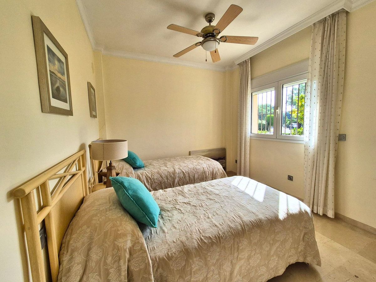 Ubicada en el prestigioso San Roque Club, esta preciosa casa pareada de 3 dormitorios ofrece la combinación perfecta de confort, privacidad y belleza natural. Rodeada de naturaleza y dos campos de golf de primer nivel, la comunidad cuenta con seguridad 24 horas y un entorno exclusivo y tranquilo.La vivienda dispone de un amplio salón con chimenea y zona de comedor, conectado con una gran cocina totalmente equipada a través de una amplia apertura que aporta luz natural y una agradable sensación de amplitud. Desde el salón se accede directamente a una terraza privada y a un jardín privado, ideales para comer al aire libre, recibir invitados o simplemente relajarse bajo el sol mediterráneo.En la planta de entrada se encuentra un cómodo dormitorio de invitados y un baño completo. En la planta superior, los otros dos dormitorios cuentan con baños en suite y terrazas privadas. La suite principal disfruta de vistas al mar en la distancia, mientras que la terraza del segundo dormitorio conduce a un solárium en la azotea con impresionantes vistas panorámicas al mar y al paisaje circundante.Entre otros detalles destacados se incluyen aire acondicionado frío/calor, calefacción por suelo radiante en los baños, aparcamiento cubierto privado y acceso a una piscina comunitaria. Ya sea como residencia habitual o como refugio vacacional, esta excepcional propiedad ofrece un estilo de vida inmejorable en una ubicación privilegiada.~