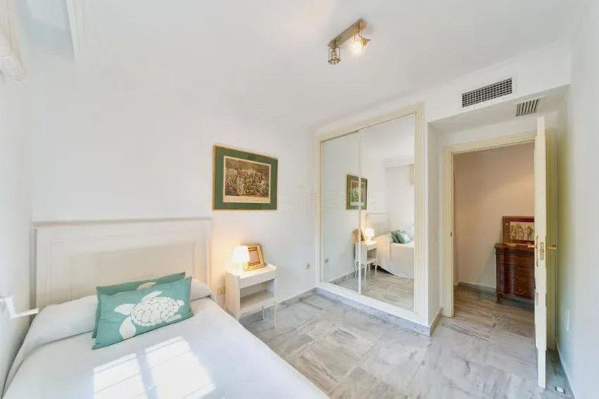 Apartamento en la Urbanización La Dama de Noche, ubicada en Nueva Andalucía, a 5 minutos andando a Puerto Banus.Consta de 3 dormitorios, 2 cuartos de baño, uno de ellos en suite. Armarios empotrados en todas las habitaciones, incluso en el pasillo de entrada. Cocina equipada y lavadero, plaza de parking subterránea incluido y parking libre en la misma urbanización.Seguridad presencial y vigilancia las 24 horas en toda la urbanización. Piscinas, pistas de pádel, restaurante, parque para niños, y grandes jardines.Apartamento Planta Baja, Marbella, Costa del Sol.3 Dormitorios, 2 Baños, Construidos 150 m², Terraza 20 m², Jardin/Terreno 90 m².Posición : Cerca de Tiendas, Cerca de Colegios, Cerca de Marina, Urbanización.Orientación : Suroeste.Estado : Excelente.Piscina : Comunitaria, Piscina de Niños.Climatización : Aire Acondicionado, A/A Caliente, A/A Frio.Vistas : Jardín.Caracteristicas : Terraza Cubierta, Ascensor, Armarios Empotrados, Cerca de Transporte, Terraza Privada, WiFi, Paddle Tenis, Lavadero, Baño En-Suite, Acceso para personas con movilidad reducida, Suelos de Mármol, Doble acristalamiento, 24 Horas Recepción, Cerca de una Iglesia, Fibra óptica.Muebles : Parcialmente.Cocina : Equipada.Jardin : Comunitario.Seguridad : Recinto Cerrado, Seguridad 24 Horas, Caja fuerte.Aparcamiento : Subterráneo, Garaje, Cubierto, Privado.Categoría : Golf, Reventa.~