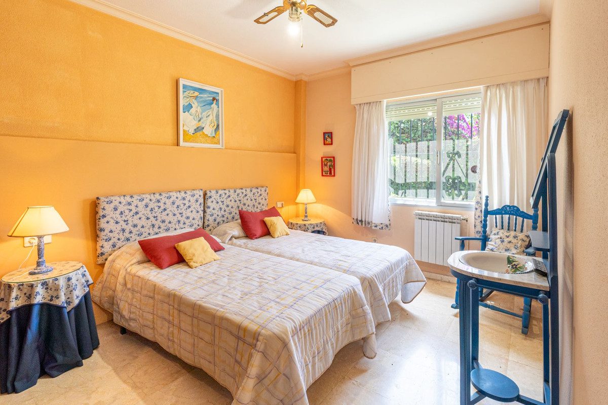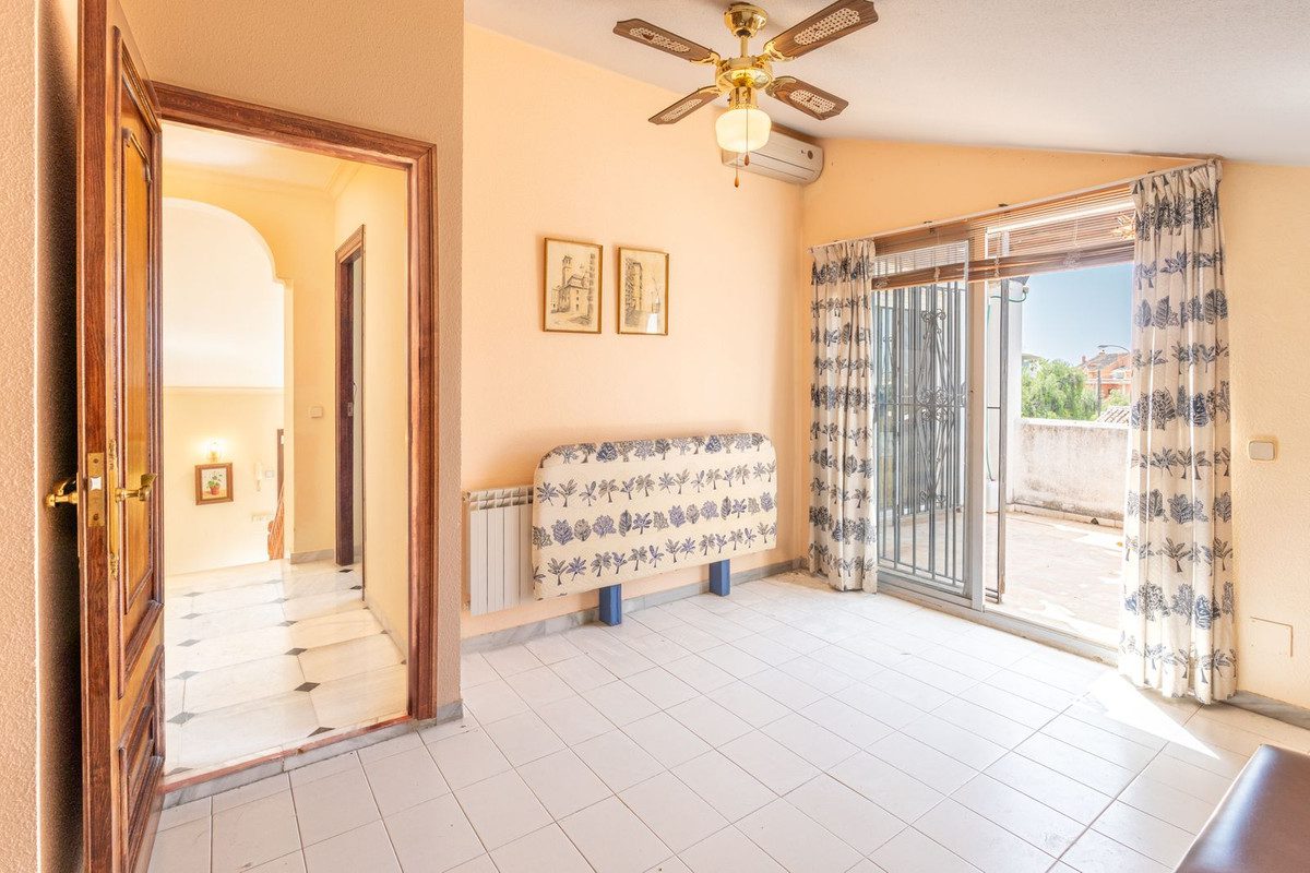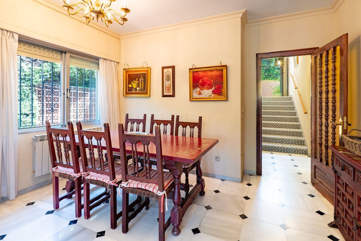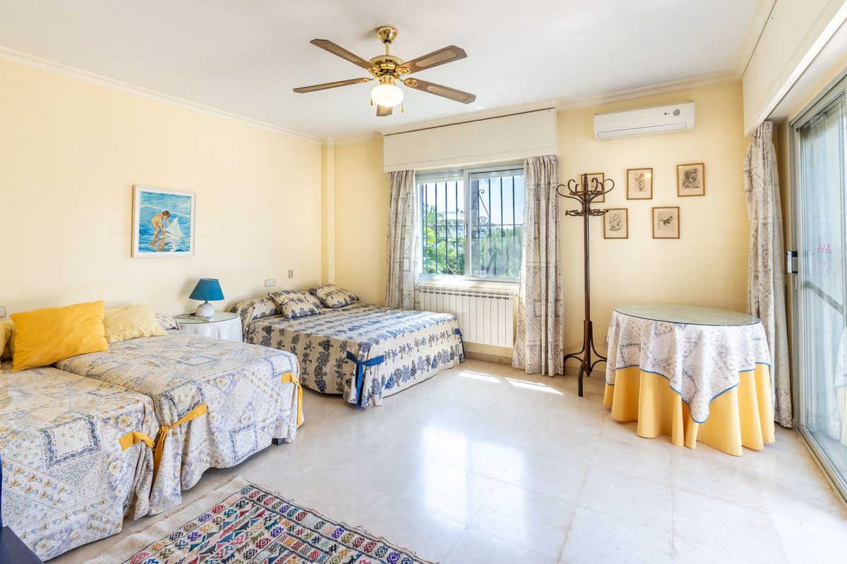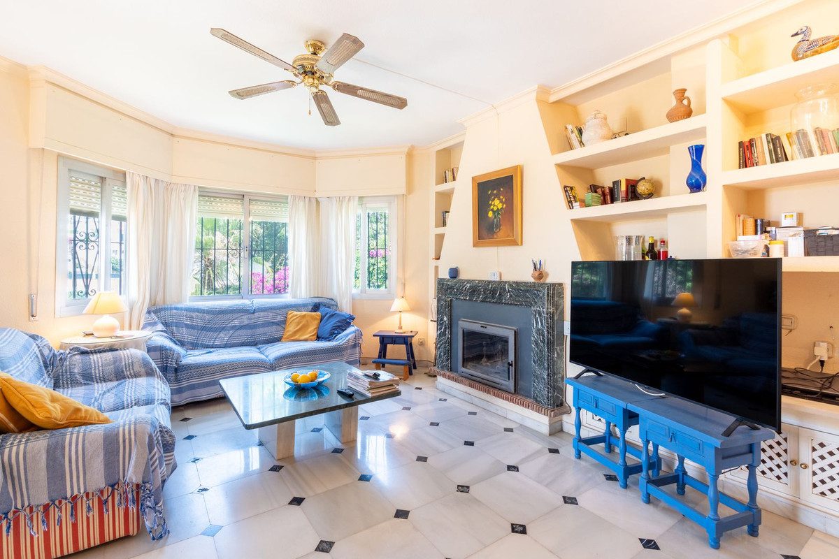 Situado en una tranquila zona residencial de Nueva Andalucía, Marbella, este chalet independiente se encuentra a escasos minutos de Puerto Banús, rodeado de todos los servicios esenciales: Ayuntamiento, farmacias, supermercados, colegios, iglesia y transporte público.Construida en los años 80, la propiedad presenta una estructura sólida y un buen estado general de conservación. Está completamente habitable y funcional, aunque ofrece una magnífica oportunidad de actualización o modernización estética para adaptarla a las necesidades actuales de confort y diseño.Características principales:6 dormitorios en total: 4 principales y 2 de invitados en planta independiente3 baños completosSalón luminoso con chimenea y acceso directo al exteriorCocina independiente equipada, con despensa y salida a una terraza-tendederoAmplio trastero abuhardilladoZonas exteriores pensadas para disfrutar:Porche cubierto con barbacoa, ideal para reuniones al aire libreDos terrazas: una en el dormitorio principal con pérgola, y otra en el salón, acristalada con toldoPiscina privada con zona solárium, rodeada de jardín consolidado con césped, árboles frutales y plantas ornamentalesGaraje cubierto y cerrado con puerta automática (1 plaza) y depuradora de piscinaFácil aparcamiento exteriorInstalaciones y equipamiento:Calefacción y agua caliente mediante caldera de gasoil con depósito de 1.000 LAire acondicionado en planta alta y ventiladores de techo en todas las habitacionesChimenea en el salónCocina amueblada y equipada con electrodomésticosUna vivienda ideal como residencia familiar habitual o casa de vacaciones, con gran amplitud, privacidad y un enorme potencial de revalorización tras una reforma personalizada. Todo ello en una ubicación privilegiada de la Costa del Sol.El Documento Informativo Abreviado está a su disposición. Gastos: Impuestos (ITP o IVA+AJD) + gastos de notaría y registro.~