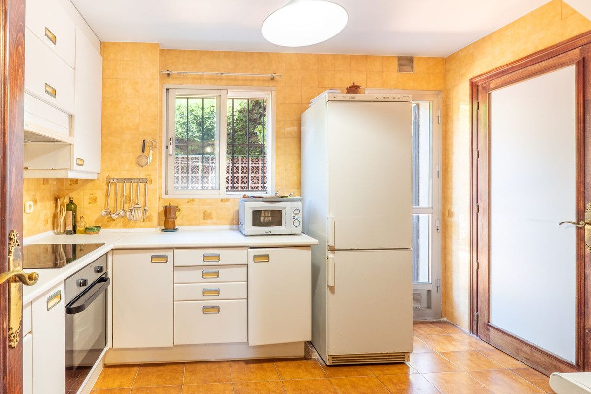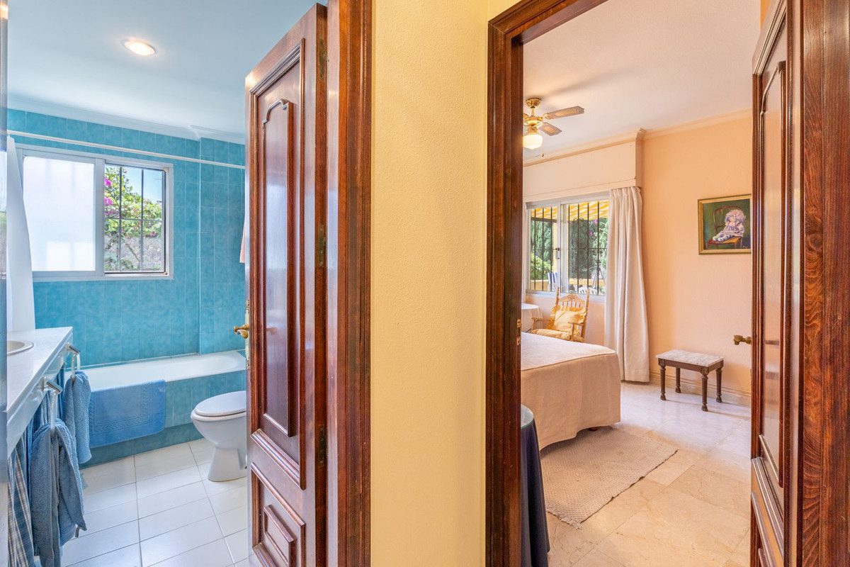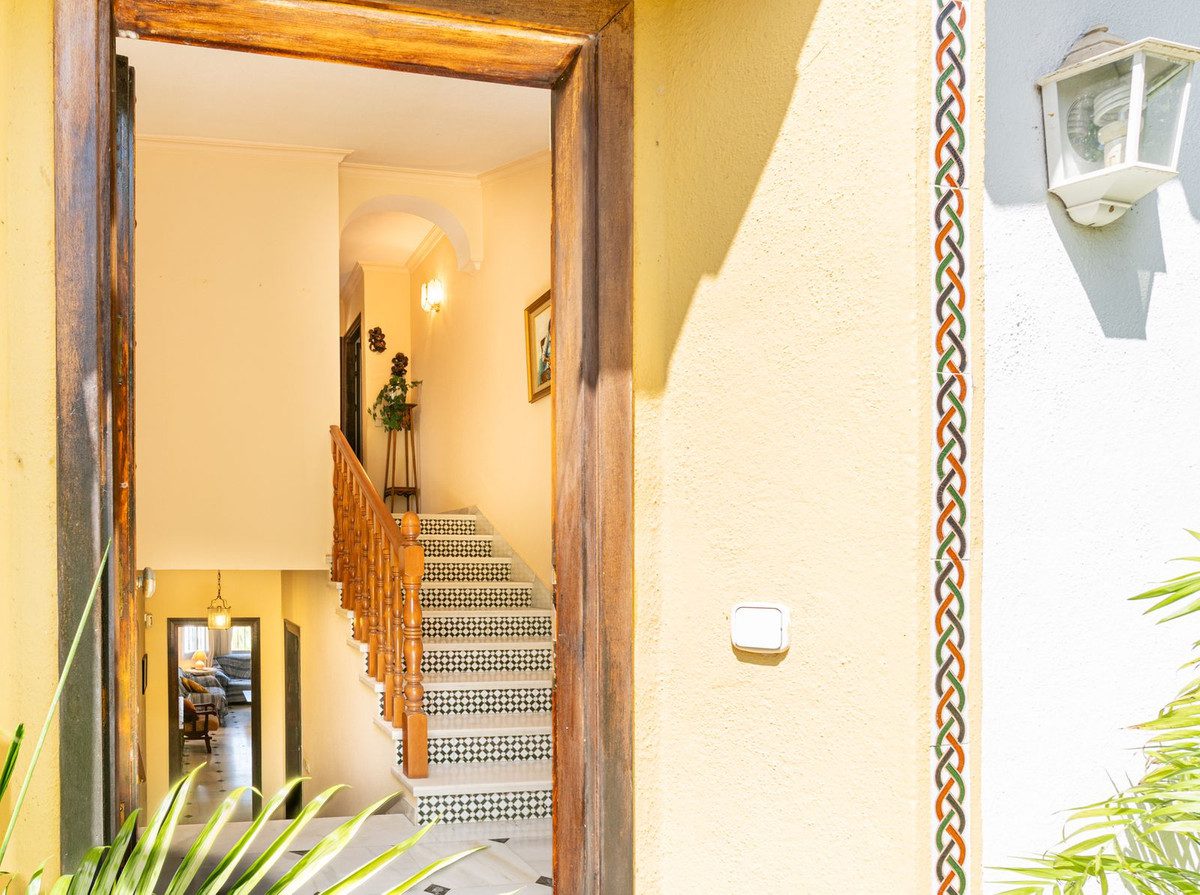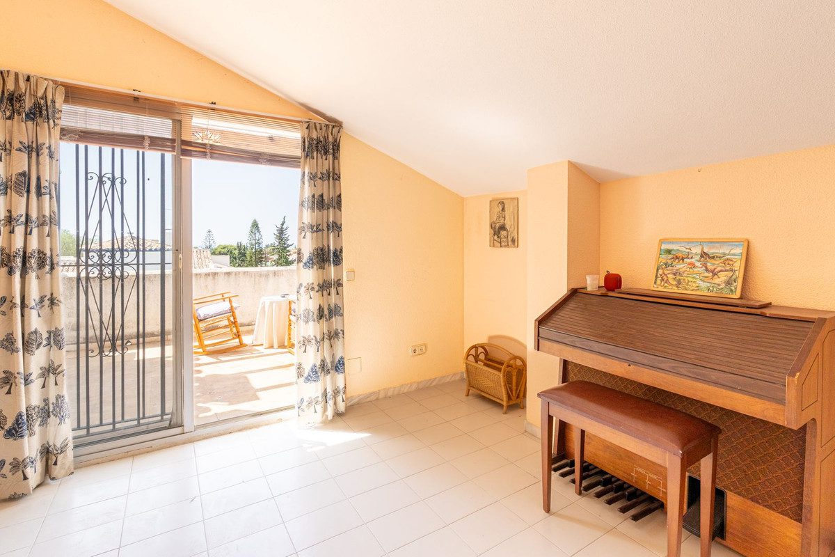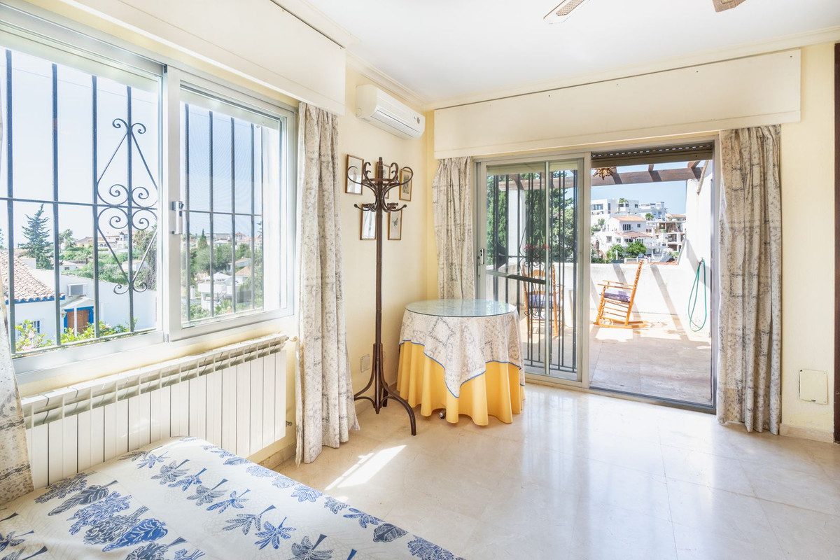 Situado en una tranquila zona residencial de Nueva Andalucía, Marbella, este chalet independiente se encuentra a escasos minutos de Puerto Banús, rodeado de todos los servicios esenciales: Ayuntamiento, farmacias, supermercados, colegios, iglesia y transporte público.Construida en los años 80, la propiedad presenta una estructura sólida y un buen estado general de conservación. Está completamente habitable y funcional, aunque ofrece una magnífica oportunidad de actualización o modernización estética para adaptarla a las necesidades actuales de confort y diseño.Características principales:6 dormitorios en total: 4 principales y 2 de invitados en planta independiente3 baños completosSalón luminoso con chimenea y acceso directo al exteriorCocina independiente equipada, con despensa y salida a una terraza-tendederoAmplio trastero abuhardilladoZonas exteriores pensadas para disfrutar:Porche cubierto con barbacoa, ideal para reuniones al aire libreDos terrazas: una en el dormitorio principal con pérgola, y otra en el salón, acristalada con toldoPiscina privada con zona solárium, rodeada de jardín consolidado con césped, árboles frutales y plantas ornamentalesGaraje cubierto y cerrado con puerta automática (1 plaza) y depuradora de piscinaFácil aparcamiento exteriorInstalaciones y equipamiento:Calefacción y agua caliente mediante caldera de gasoil con depósito de 1.000 LAire acondicionado en planta alta y ventiladores de techo en todas las habitacionesChimenea en el salónCocina amueblada y equipada con electrodomésticosUna vivienda ideal como residencia familiar habitual o casa de vacaciones, con gran amplitud, privacidad y un enorme potencial de revalorización tras una reforma personalizada. Todo ello en una ubicación privilegiada de la Costa del Sol.El Documento Informativo Abreviado está a su disposición. Gastos: Impuestos (ITP o IVA+AJD) + gastos de notaría y registro.~