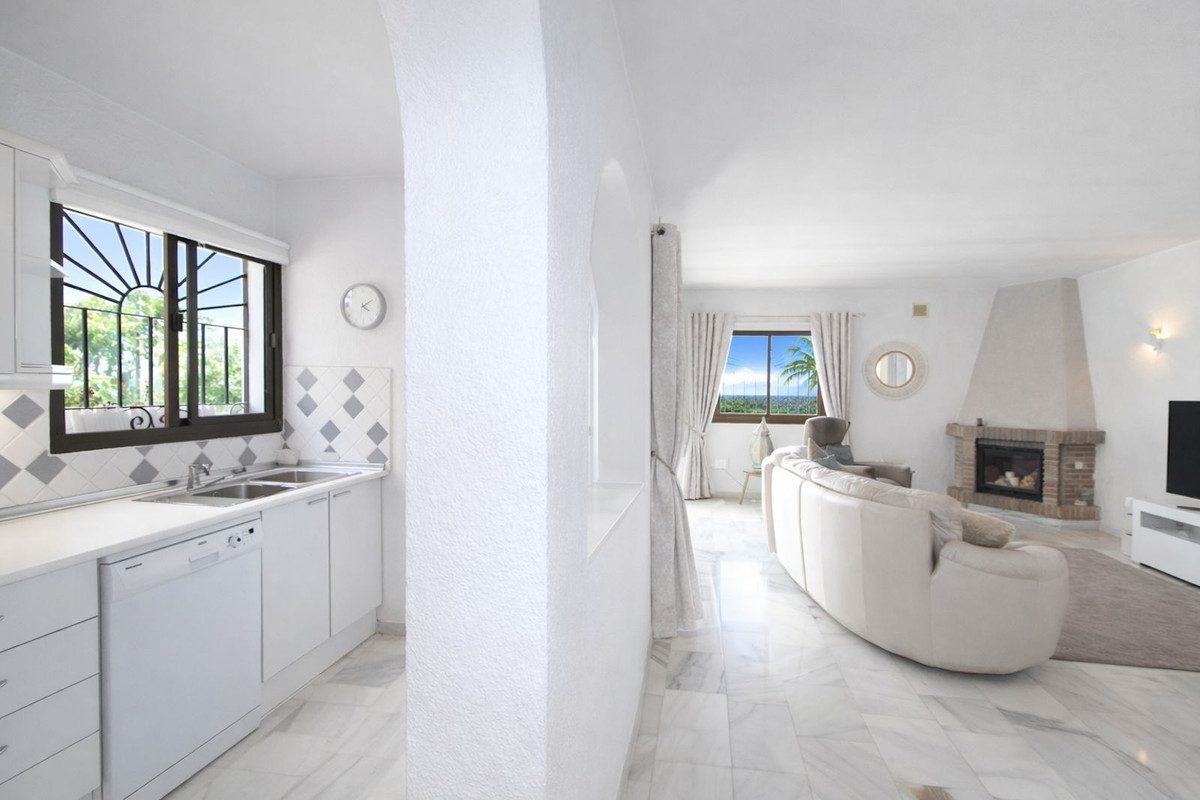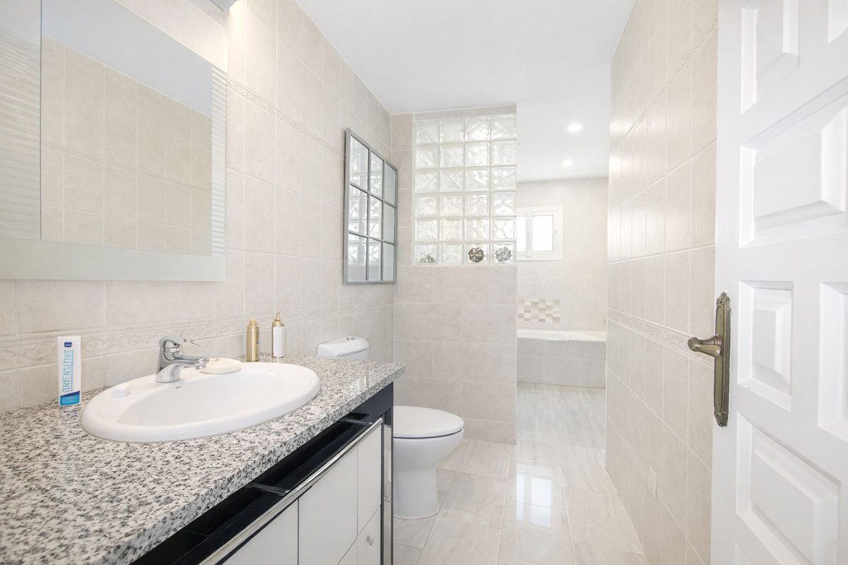 Esta encantadora villa familiar en Benalmádena, ubicada en una corta calle sin salida, en una zona residencial muy tranquila y segura con impresionantes vistas al mar y la montaña. La orientación es fabulosa y hay aparcamiento fuera en la carretera, además de un gran patio amurallado con piscina y varias zonas de estar. La propiedad tiene jardines bien cuidados y de fácil mantenimiento en tres lados y también hay un solárium privado al que se accede a través de una escalera recta de fácil acceso que ofrece vistas panorámicas al mar y a las montañas. La propiedad principal está toda en un nivel que consta de 3 dormitorios dobles grandes, 2 baños, una cocina/ sala de estar semi abierta orientada al suroeste con fuego real y fuera de esta zona una gran terraza cubierta con cortinas de vidrio alrededor permitiendo el uso y confort durante todo el año.Debajo de la propiedad principal es un apartamento independiente con una sala de estar, cocina abierta, baño y un dormitorio doble en suite.La comunidad está actualmente rehabilitando la piscina comunitaria y el costo ya se ha contabilizado. Hay numerosos servicios; incluyendo supermercado, cafeterías, restaurantes, bares todos dentro de un corto paseo y también está a 20 minutos a pie de la playa ya solo 10 minutos en coche del aeropuerto de Málaga.Esta villa realmente necesita ser vista para apreciar todo su potencial.~