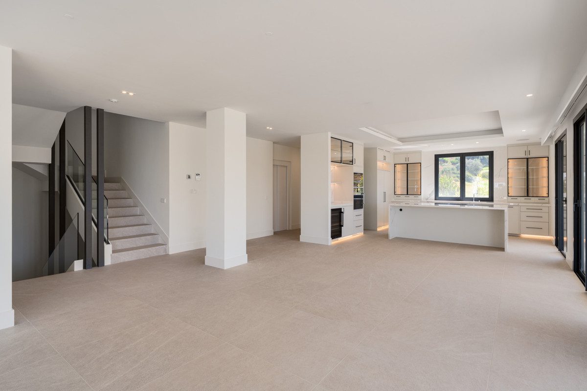 Villa Three, situada en la exclusiva comunidad de La Resina Golf en Estepona, combina sofisticación contemporánea con lujo práctico. Diseñada por Francisco Martínez Galván, esta residencia de cuatro niveles cuenta con 674 m² construidos, incluyendo 503 m² interiores elegantes y 171 m² de terrazas.La llegada se realiza directamente a la terraza en la azotea a través de un acceso privado, ofreciendo vistas panorámicas al campo de golf y al mar Mediterráneo. La terraza cuenta con jacuzzi y barbacoa integrada, perfecta para reuniones sociales o relajarse al atardecer.En la planta principal, el espacio abierto integra salón y comedor, con una cocina moderna y una isla de piedra natural, además de una cocina secundaria para eventos. Grandes ventanales conectan con la piscina de agua salada, rodeada de vegetación tropical que aporta privacidad y tranquilidad. Una habitación en suite para invitados y un sistema domótico completan esta planta.El nivel superior alberga la suite principal, con terraza privada y vistas al mar, vestidor amplio y un lujoso baño en mármol con bañera independiente. Otra habitación en suite con vistas al jardín mantiene el mismo nivel de confort.El sótano ofrece posibilidad de personalización, ideal para añadir más dormitorios, gimnasio, cine o spa, con acceso directo al jardín.La Resina Golf destaca por su seguridad y sus villas de alto nivel. Cerca se encuentran el International American College, canchas de pádel en Bossa Café, playas, marina y restaurantes típicos como Chiringuito Palm Beach. La autopista A-7 y la estación de autobuses de Estepona facilitan la movilidad, mientras el aeropuerto de Málaga se encuentra a 45 minutos.Villa Three simboliza el estilo de vida costero sofisticado, con vistas impresionantes y un diseño pensado para el máximo confort familiar y entretenimiento.~
