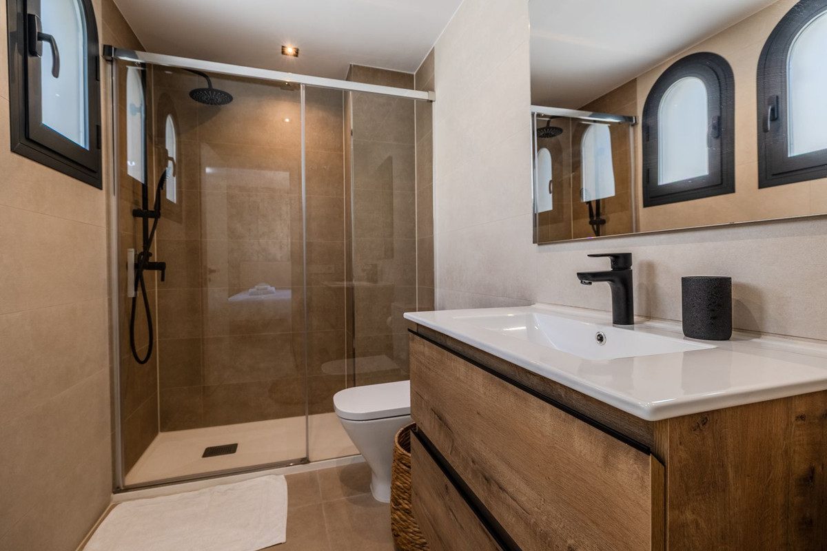Ubicada en la exclusiva zona de El Campanario en Estepona, esta elegante casa adosada de esquina forma parte de un tranquilo complejo de solo 47 viviendas. Diseñada con arquitectura andaluza tradicional, la propiedad disfruta de amplias terrazas y una abundante luz natural en todos sus espacios.Con una superficie de 131,34 m² distribuidos en tres niveles, la casa adosada cuenta con tres dormitorios, dos baños, un aseo de cortesía, un luminoso salón-comedor y una cocina totalmente equipada.Los espacios exteriores incluyen una acogedora terraza de entrada, una segunda terraza junto al salón principal y un solárium en la azotea con pérgola, ideal para relajarse o entretener a invitados. La vivienda también dispone de sótano, dos plazas de aparcamiento privadas y un trastero.Los residentes de este encantador complejo tienen acceso a preciosos jardines paisajísticos y a una piscina comunitaria.La propiedad está situada en una ubicación ideal, a solo 5 minutos de San Pedro Alcántara, 15 minutos de Puerto Banús y con fácil acceso al centro de Marbella y Estepona. El Aeropuerto Internacional de Málaga se encuentra convenientemente a solo 45 minutos, al igual que el Aeropuerto de Gibraltar.La vivienda también está rodeada de algunos de los mejores campos de golf de la zona, lo que la convierte en una opción perfecta para los amantes de este deporte.~