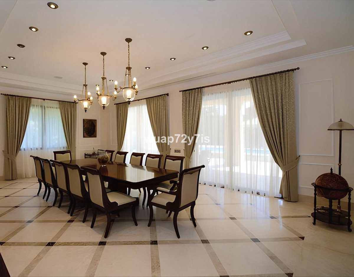EXCEPCIONAL VILLA DE LUJO EN VENTA EN GUADALMINA BAJA, SAN PEDRO DE ALCÁNTARA, MARBELLAEsta excepcional villa se encuentra en el corazón de Guadalmina Baja, una de las zonas residenciales más prestigiosas y tranquilas de la Costa del Sol. Conocida por sus amplios bulevares, privacidad y exuberante entorno, Guadalmina Baja ofrece la combinación perfecta de lujo, encanto costero y fácil acceso a lo mejor de Marbella. En minutos, podrá llegar al emblemático Puerto Banús, San Pedro de Alcántara, el Valle del Golf de Nueva Andalucía y el vibrante centro de Marbella.Ubicada en un impresionante terreno llano y ajardinado de 4.504 m², esta elegante propiedad con orientación suroeste ofrece 1.018 m² de sofisticada superficie habitable distribuida en tres plantas, todas conectadas por ascensor. Cada detalle de esta vivienda ha sido cuidadosamente diseñado para ofrecer comodidad, practicidad y estilo inigualables.Una Gran Bienvenida e Interiores LuminososAl entrar en la propiedad, le recibirá un majestuoso recibidor de doble altura, inundado de luz natural y enmarcado por elegantes detalles arquitectónicos. Este conduce a una sala de estar de hermosas proporciones, una acogedora sala de TV con chimenea y un comedor formal, todo perfectamente conectado con las terrazas y el jardín, lo que permite una cómoda convivencia interior y exterior.La villa cuenta con 6 amplios dormitorios y 7 baños, todos con acabados de la más alta calidad. En la planta principal, encontrará dos amplios dormitorios de invitados con baño en suite, ambos con armarios empotrados, y una gran suite principal con acceso a una terraza privada, baños para él y para ella y vestidores a medida.Elegante Vida al Aire LibreEl exterior de la villa es igualmente impresionante. La terraza principal cubierta tiene vistas a una piscina climatizada y a unos jardines bellamente cuidados. Junto a la piscina se encuentra una cocina exterior totalmente equipada y una zona de barbacoa, perfecta para disfrutar de una relajada cena al aire libre. Un elegante pabellón al aire libre ofrece el entorno ideal para celebrar elegantes cócteles o largas comidas de verano con amigos y familiares.Una cocina diseñada para el entretenimientoEl corazón de la casa, la moderna cocina gourmet, está equipada con electrodomésticos de alta gama, incluyendo un refrigerador doble, una vinoteca, grifería de alta gama y amplio espacio de almacenamiento. Este espacio culinario se integra a la perfección con los comedores formales e informales, lo que lo hace ideal tanto para el día a día como para el entretenimiento a gran escala.Comodidades en las plantas superior e inferiorLa planta superior cuenta con dos dormitorios más con baño en suite, una sala de juegos privada y una amplia terraza con serenas vistas al jardín. El sótano incluye un apartamento independiente para invitados o personal, una amplia bodega, un gimnasio totalmente equipado, una zona de lavandería, un aseo de cortesía y varios trasteros. La propiedad también incluye una entrada privada, garaje para seis vehículos y una cochera cubierta para cuatro coches adicionales, lo que garantiza un amplio espacio de estacionamiento y total discreción para invitados o residentes.Tecnología y seguridad avanzadasNo se ha escatimado en gastos en la instalación de características avanzadas en toda la casa. Estas incluyen:• Sistema de domótica• Calefacción por suelo radiante en toda la villa• Aire acondicionado integrado• Ventanas de doble acristalamiento y puertas correderas de cristal• Persianas eléctricas• Paneles solares para eficiencia energética• Sistema de sonido integrado en el techo en todas las estancias principales• Sistema de seguridad integral con 14 cámaras de vigilancia exterior, todas controlables mediante smartphoneEstilo de vida, elegancia e inversión, todo en unoEsta villa ofrece todo lo que un comprador exigente podría desear: espacio, privacidad, arquitectura refinada y una ubicación privilegiada. Es perfecta como residencia principal, refugio vacacional o una propiedad de inversión de alta rentabilidad en una de las zonas más codiciadas de Marbella.Ya sea que reciba invitados en el elegante pabellón, se relaje en la piscina climatizada, disfrute de un juego en el salón privado o prepare la cena en la cocina al aire libre, cada rincón de esta propiedad está diseñado para inspirar lujo, comodidad y un estilo de vida mediterráneo atemporal.~