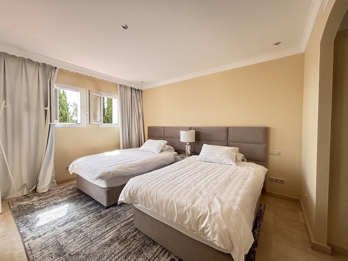 Casa sin amueblar de tres plantas construida sobre una parcela de 2.025,63 m², situada en la urbanización La Panera, en Estepona. La propiedad tiene orientación sur y cuenta con vistas al mar, lo que garantiza luminosidad y una excelente ubicación.La superficie total construida es de 696,65 m², más 95 m² de porches cubiertos.Planta sótano (299,75 m²): incluye garaje cubierto con capacidad para 3 o 4 coches, bodega, sala de juegos, gimnasio, trastero, lavandería, cuarto de instalaciones, baño, aseo y dos espacios habilitados como dormitorios adicionales.Planta baja (218,50 m² + 95 m² de porches): dispone de recibidor, salón, cocina-comedor, salita, trastero, varios baños, y dos dormitorios en suite, cada uno con su baño y vestidor.Planta alta (178,40 m²): cuenta con tres dormitorios, todos con baño en suite y vestidor, además de pasillo y dos terrazas.Todos los baños son exteriores, con ventanas que aportan luz natural y ventilación.En la parte trasera de la vivienda hay una cocina con barbacoa cubierta, ideal para disfrutar al aire libre durante todo el año.En la entrada de la parcela, la vivienda cuenta con una zona de aparcamiento exterior para unos 5 coches más.El resto del terreno está destinado a jardines, zonas abiertas y una piscina de 40,5 m².~