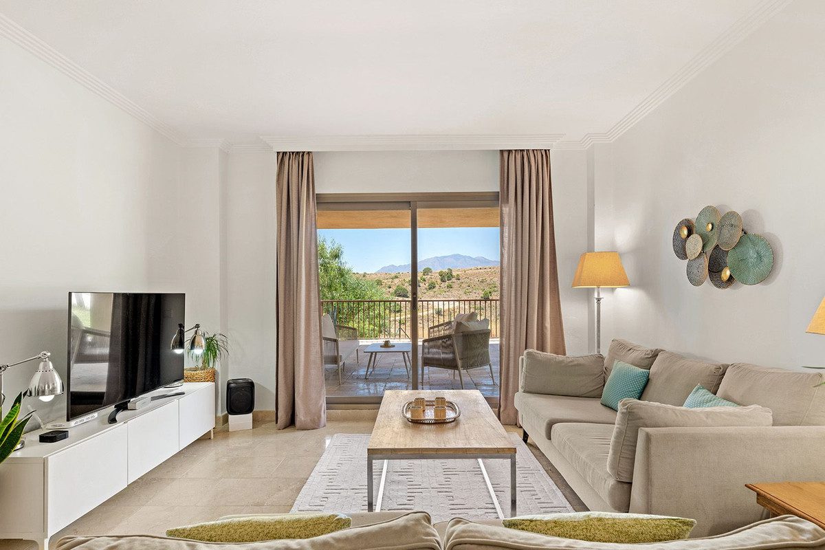 Ubicado en la prestigiosa Hacienda Señorío de Cifuentes, este impresionante apartamento ofrece el equilibrio perfecto entre lujo, confort y naturaleza. Rodeado de magníficos campos de golf y los cuidados jardines de la urbanización, es el hogar ideal para quienes buscan un refugio tranquilo en un entorno exclusivo, sin renunciar a la comodidad de estar cerca de todos los servicios.La vivienda, que cuenta con tres luminosos dormitorios y dos baños, ha sido diseñada para proporcionar una experiencia de vida cómoda y elegante. El salón, con orientación oeste, es amplio y acogedor, y se conecta con una espectacular terraza en forma de L, muy privada, ideal para disfrutar del sol, desconectar o compartir momentos especiales. Desde la terraza se aprecian vistas laterales al mar y vistas a la montaña, lo que refuerza la sensación de paz y conexión con el entorno natural.La cocina independiente, completamente equipada, ofrece un espacio funcional y sofisticado, perfecto para los amantes de la gastronomía. Además, el apartamento dispone de aire acondicionado y suelo radiante en toda la vivienda, lo que garantiza el máximo confort en cualquier época del año.La urbanización, segura y perfectamente mantenida, cuenta con vigilancia 24 horas, amplias zonas ajardinadas y cuatro piscinas, incluyendo una impresionante infinity pool que parece fundirse con el horizonte, creando un ambiente único de relajación.A tan solo 8 minutos en coche de supermercados, farmacias y restaurantes, y a 15 minutos de San Pedro, con Marbella y Estepona a solo 25 minutos, esta propiedad ofrece una ubicación inmejorable para quienes buscan combinar tranquilidad, naturaleza y cercanía a la vibrante vida de la Costa del Sol.¡Ven a descubrirlo y déjate cautivar por su belleza, su luz y su encanto!Tiene a su disposición el documento informativo abreviado. Gastos: Impuestos (ITP o IVA+AJD) + Gastos notariales y registrales. ALA.~