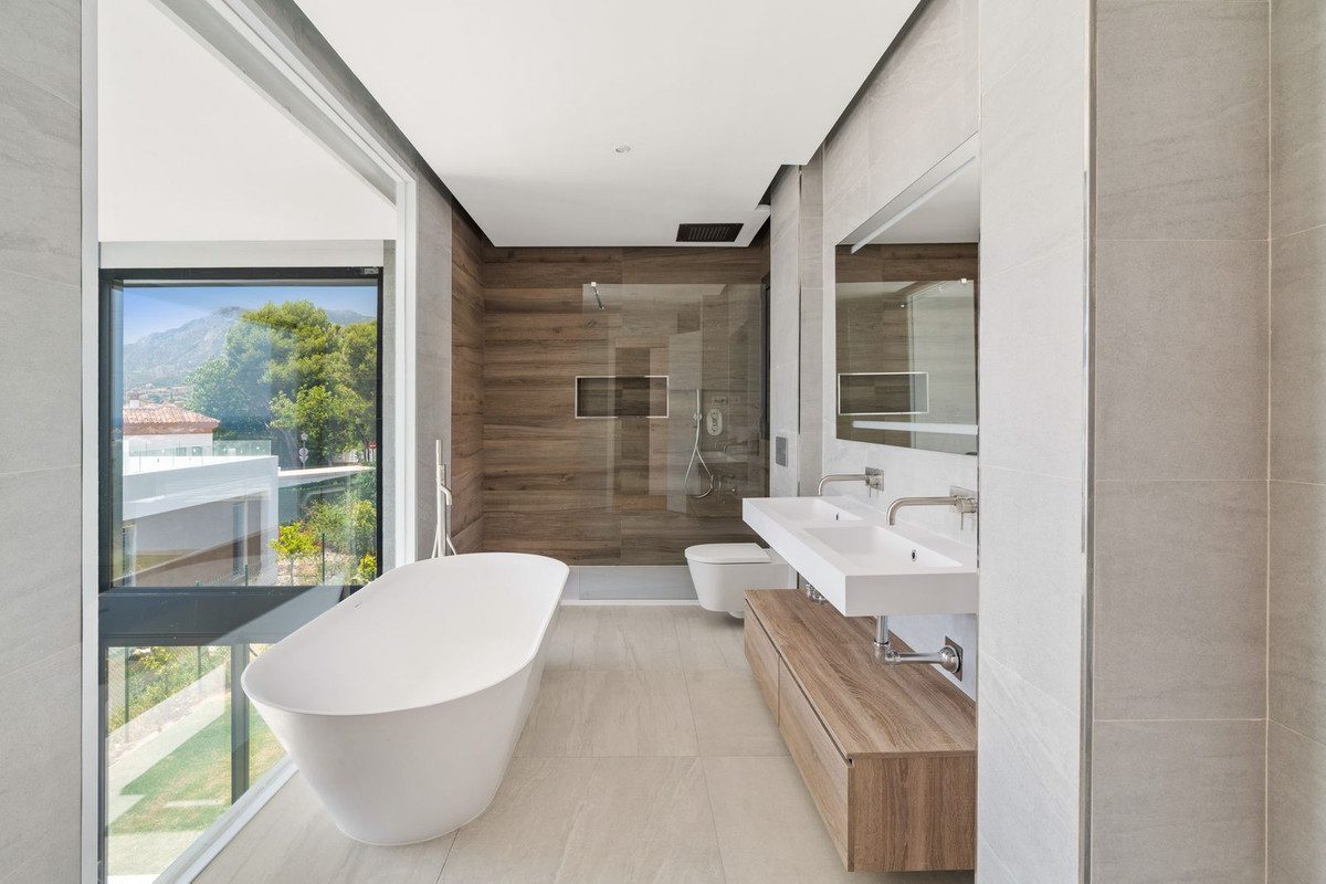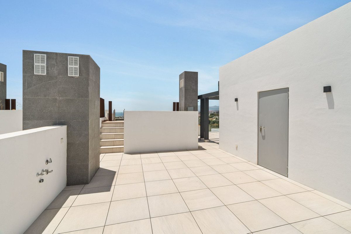 Sumérgete en un estilo de vida único en la Costa del Sol.Descubre el estilo de vida excepcional que ofrece esta elegante villa pareada, ubicada en una de las zonas más prestigiosas de Marbella: Rio Real. No es solo una vivienda, sino un espacio que combina a la perfección lujo, confort y vistas espectaculares al Mar Mediterráneo, la Bahía de Marbella y las majestuosas montañas.Situada en una exclusiva urbanización cerrada con seguridad las 24 horas, la propiedad garantiza privacidad y tranquilidad absolutas. Los residentes disfrutan de acceso a una piscina comunitaria, un gimnasio moderno y cuidados espacios verdes.La villa se distribuye en cuatro niveles, diseñados pensando en la comodidad del día a día. En la planta principal, encontramos un amplio y luminoso salón con salida directa a la terraza y al jardín, una cocina moderna y totalmente equipada con isla central, comedor, despacho, aseo de cortesía y un dormitorio con baño en suite.En la planta superior, la suite principal ofrece impresionantes vistas al mar y a la montaña, un baño amplio y un elegante vestidor. Dos dormitorios de invitados adicionales, cada uno con baño en suite, proporcionan privacidad y confort tanto a residentes como a visitantes.La planta -1 ofrece un espacio extra con múltiples posibilidades: un quinto dormitorio, un baño, lavadero y una sala polivalente ideal para cine en casa, gimnasio, zona de relax o incluso una bodega. Un ascensor privado conecta todos los niveles, desde el sótano hasta el espectacular solárium en la azotea.2 plazas de garaje incluidas en el precio.En la azotea te espera una auténtica joya: una piscina privada con vistas panorámicas, perfecta para descansar, hacer yoga por la mañana o disfrutar de puestas de sol con amigos. Además, el jardín privado ofrece la posibilidad de construir una segunda piscina, creando un espacio exterior ideal para el ocio y el relax al aire libre.La villa se encuentra en una ubicación inmejorable, rodeada de naturaleza mediterránea, a solo unos minutos del prestigioso campo de golf Rio Real, playas de arena fina y el animado centro de Marbella.Es la opción perfecta para familias que buscan espacio, privacidad y seguridad, profesionales que trabajan a distancia y valoran el lujo, así como para inversores que desean una propiedad exclusiva con un excelente potencial de alquiler.~