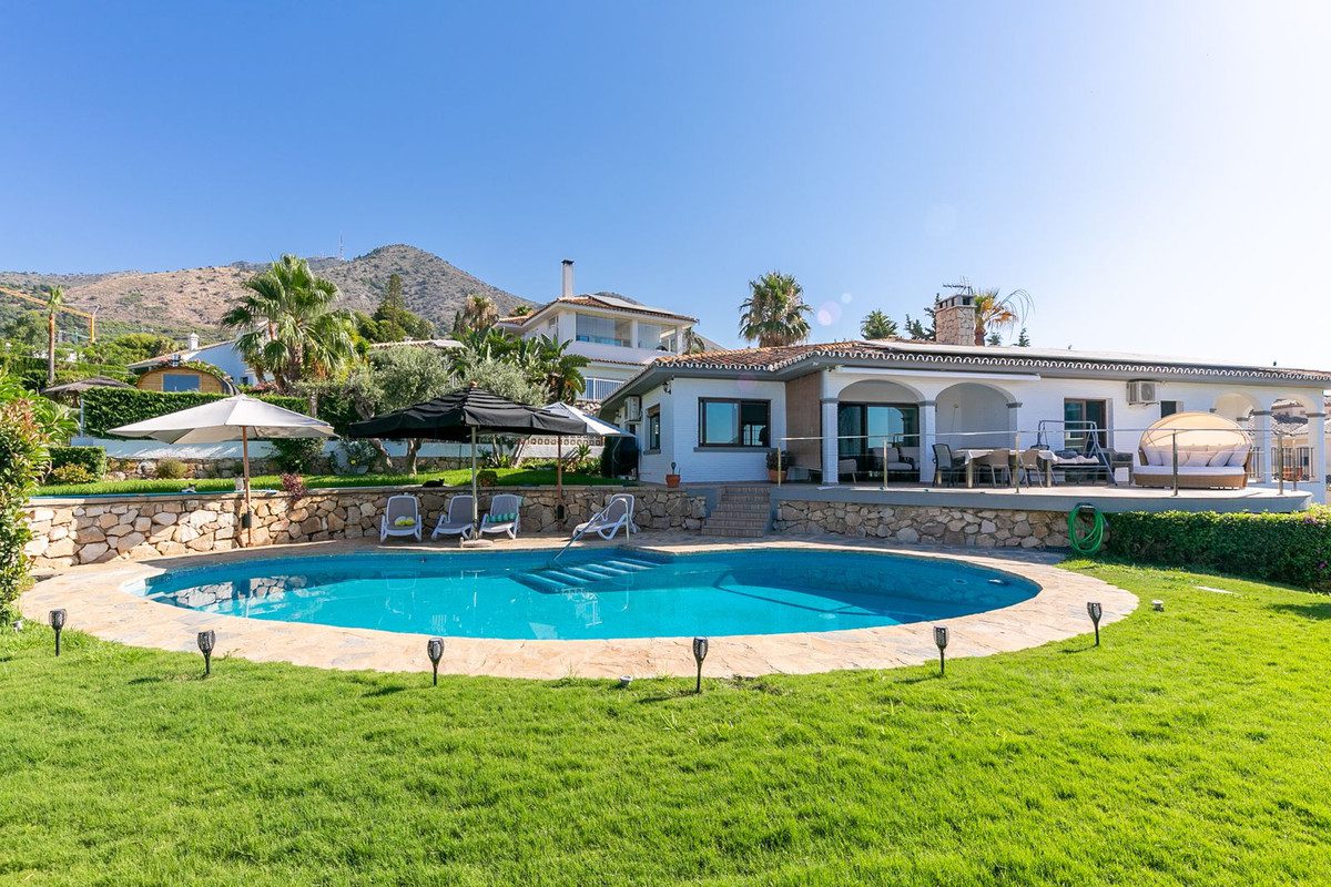 Exclusiva villa independiente de 247 m2 construidos en parcela de 1650 m2, en la Capellania, Benalmádena.Distribuida en una sola planta, esta vivienda destaca por su funcionalidad y comodidad, ideal para familias o personas con movilidad reducida.Dispone de:3 dormitorios amplios3 bañosCocina semi abierta con despensaLavaderoSalón-comedor con salida directa a terraza y jardínAmplio Sótano.La orientación sur garantiza luz natural durante todo el día y una agradable temperatura durante todo el año. El entorno, rodeado de árboles frutales y jardines, ofrece tranquilidad, privacidad y contacto con la naturaleza.Además, cuenta con parking descubierto con capacidad para 7 vehículos y garaje cubierto para 1 coche grande o 2 pequeños..Instalación por fibra óptica de cámaras de seguridad en todo el perímetro, riego automático, punto de carga para vehículos eléctricos.La propiedad está equipada con un sistema de energía solar de alta eficiencia, compuesto por:14 paneles solares de 450 W (6.300 W de potencia total)1 inversor trifásico marca Fronius1 banco de 4 baterías de litio de 54 Ah cada unaProducción anual estimada: 6.500 – 7.000 kWh~