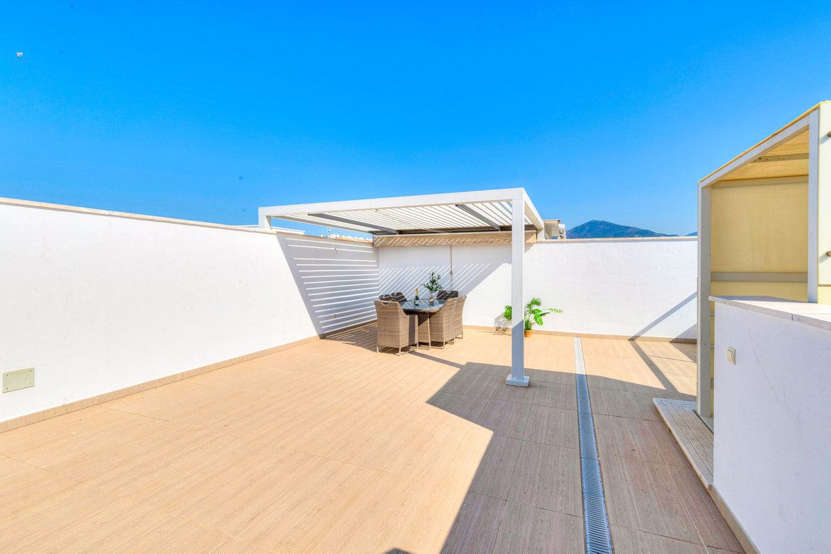 Situado en el consolidado y demandado entorno residencial de San Pedro Alcántara, Marbella, este ático dúplex se encuentra a tan solo 700 metros del mar, en una urbanización bien cuidada con piscina comunitaria y acceso a todos los servicios esenciales: supermercados, restaurantes, zonas verdes, farmacias y transporte público.La propiedad se encuentra en buen estado general, completamente habitable y lista para entrar a vivir, ofreciendo además una excelente distribución y generosos espacios exteriores que invitan a disfrutar del clima mediterráneo durante todo el año.Características principales:3 dormitorios con armarios empotrados2 baños completos (uno de ellos en suite)Salón-comedor con salida directa a una terraza principal de 20 m²Cocina de diseño contemporáneo visualmente conectada al comedor, gracias a un práctico cerramiento acristaladoZona de lavadero independienteZonas exteriores pensadas para disfrutar:Escalera desde la terraza principal que da acceso a un amplio solárium privado de 65,75 m²Pérgola instalada en la zona alta, ideal para crear un chill out, comedor exterior o zona de solPiscina comunitaria en urbanización cerrada y tranquilaPlaza de aparcamiento incluida en el precioInstalaciones y equipamiento:Aire acondicionado centralizado con bomba de calorAgua caliente mediante termo eléctricoCarpintería interior y exterior en buen estado de conservaciónUrbanización con excelente mantenimiento y baja densidadUna vivienda ideal tanto como residencia habitual, segunda vivienda vacacional o como inversión de alta rentabilidad, ubicada en una de las zonas más cómodas y con mejor proyección de Marbella, con fácil acceso a la autovía A-7 y a tan solo unos minutos del centro de San Pedro, del paseo marítimo y del prestigioso Puerto Banús.El Documento Informativo Abreviado está a su disposición.Gastos: Impuestos (ITP o IVA+AJD) + gastos de notaría y registro. El precio no incluye IVA. ~