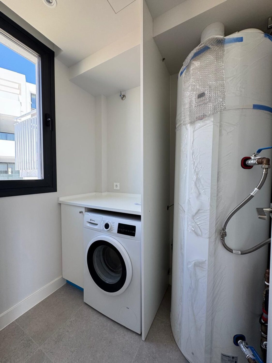 Precioso ático de nueva construcción de tres dormitorios con terraza orientada al sur en la urbanización Azahar de Estepona.Desde el salón se accede directamente a la amplia terraza, donde podrá disfrutar del sol y de las preciosas vistas al mar y a la montaña.La cocina americana está equipada con todas las comodidades y cuenta con luz natural directa. El dormitorio principal tiene baño en suite y los otros dos comparten un baño con ducha. Todos los dormitorios disponen de armarios empotrados.Desde la terraza se accede al amplio solárium con vistas panorámicas a través de una escalera.El complejo cuenta con una gran piscina exterior y ubicada en un precioso jardín. También hay un gimnasio comunitario.Todos los servicios necesarios están a poca distancia a pie, incluyendo campos de golf, la playa y centros comerciales con supermercados y restaurantes.Estepona está a menos de 5 minutos en coche, Marbella a 30 minutos y el aeropuerto de Málaga a menos de 60 minutos.La propiedad no está amueblada y se vende sin muebles.~