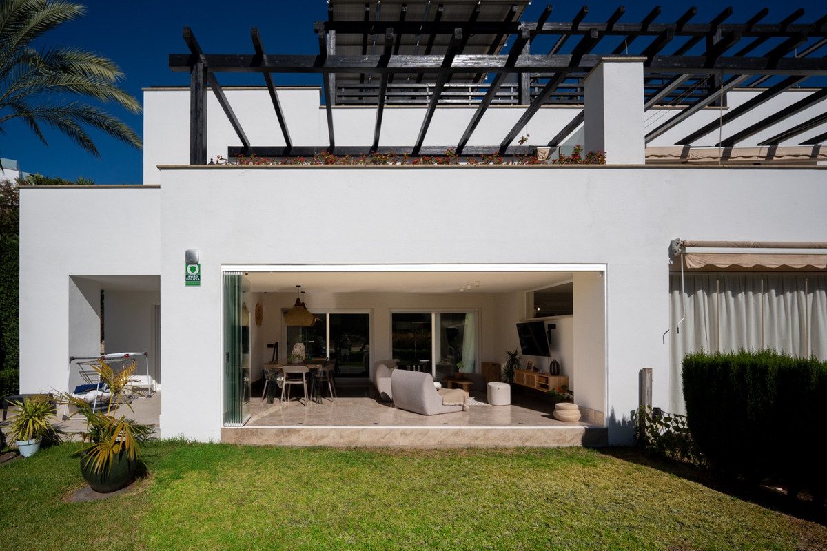 Descubre la vida costera sin esfuerzo en Townhouse Targa, una moderna casa de estilo mediterráneo en el corazón de Marbella Este. Esta elegante vivienda adosada se encuentra dentro de una comunidad privada y segura, muy cerca de playas doradas y prestigiosos campos de golf. Distribuida en tres niveles, ofrece espacios llenos de luz, zonas exteriores privadas y acabados modernos de alta calidad, creando un estilo de vida que combina comodidad y sofisticación.Al entrar, te recibe una luminosa zona de estar de concepto abierto con una cocina de diseño y acceso directo a la terraza y al jardín. Los amplios ventanales inundan la casa de luz natural y crean una conexión fluida entre el interior y el exterior. La propiedad cuenta con dos amplios dormitorios, con la opción de añadir un tercero, y tres elegantes baños. Cada planta ofrece espacios al aire libre, desde el jardín privado hasta la terraza y el balcón con relajantes vistas al mar y a los jardines.En la parte superior, un solárium privado corona la vivienda, perfecto para disfrutar del sol, cenar bajo las estrellas o simplemente relajarse. Los residentes pueden disfrutar de jardines comunitarios cuidadosamente diseñados, una piscina tranquila y aparcamiento seguro. Townhouse Targa combina un diseño moderno y limpio con una ubicación privilegiada en Marbella Este, convirtiéndose en la opción ideal para quienes buscan un refugio costero contemporáneo o una inversión inteligente en la Costa del Sol.~