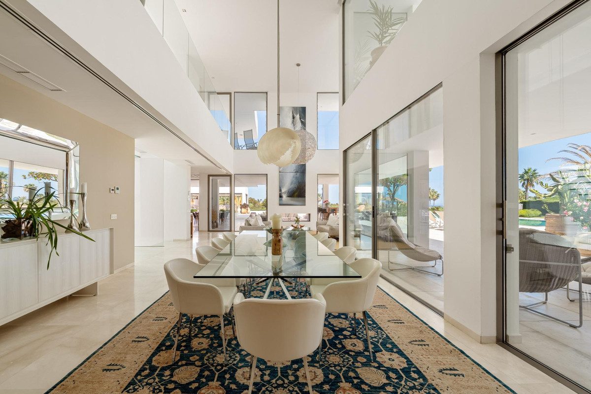 Presentamos una impresionante villa contemporánea ubicada en la prestigiosa urbanización de La Cerquilla, enclavada en el corazón del Valle del Golf de Nueva Andalucía. Esta exclusiva residencia de 7 dormitorios se asienta sobre una generosa parcela de 2.548 m2, ofreciendo una privacidad inigualable y vistas panorámicas a la emblemática montaña de La Concha de Marbella y a la costa mediterránea. Su privilegiada ubicación la sitúa muy cerca de los mejores campos de golf, colegios internacionales, restaurantes de lujo y el vibrante puerto deportivo de Puerto Banús, lo que la convierte en una inversión excepcional y una opción ideal para su estilo de vida.Entre y descubra amplios interiores cuidadosamente diseñados con texturas naturales y acabados de alta calidad. La villa presume de altos techos, elegante iluminación y una armonía entre el interior y el exterior. Las zonas de estar principales son amplias y acogedoras, decoradas con muebles a medida, materiales orgánicos y elementos decorativos de alta calidad, como arte mural tejido y cerámica artesanal. La planta superior cuenta con un tranquilo pasillo estilo galería con vistas a la planta principal, con acceso directo a los dormitorios con vistas panorámicas y terrazas privadas.En el corazón de la casa se encuentra una moderna cocina equipada con electrodomésticos de alta gama, elegantes gabinetes y un amplio comedor acristalado enmarcado por amplios ventanales. La perfecta conexión con los espacios exteriores incluye una impresionante piscina con jacuzzi, tumbonas de estilo balinés y una terraza comedor cubierta con chimenea y barbacoa, ideal para el entretenimiento. Lo mejor es la impecable pista de tenis privada al pie del jardín, ideal para los residentes durante todo el año. Esta villa personifica el lujo contemporáneo en un entorno mediterráneo, ofreciendo una combinación inigualable de comodidad, sofisticación y ubicación.~