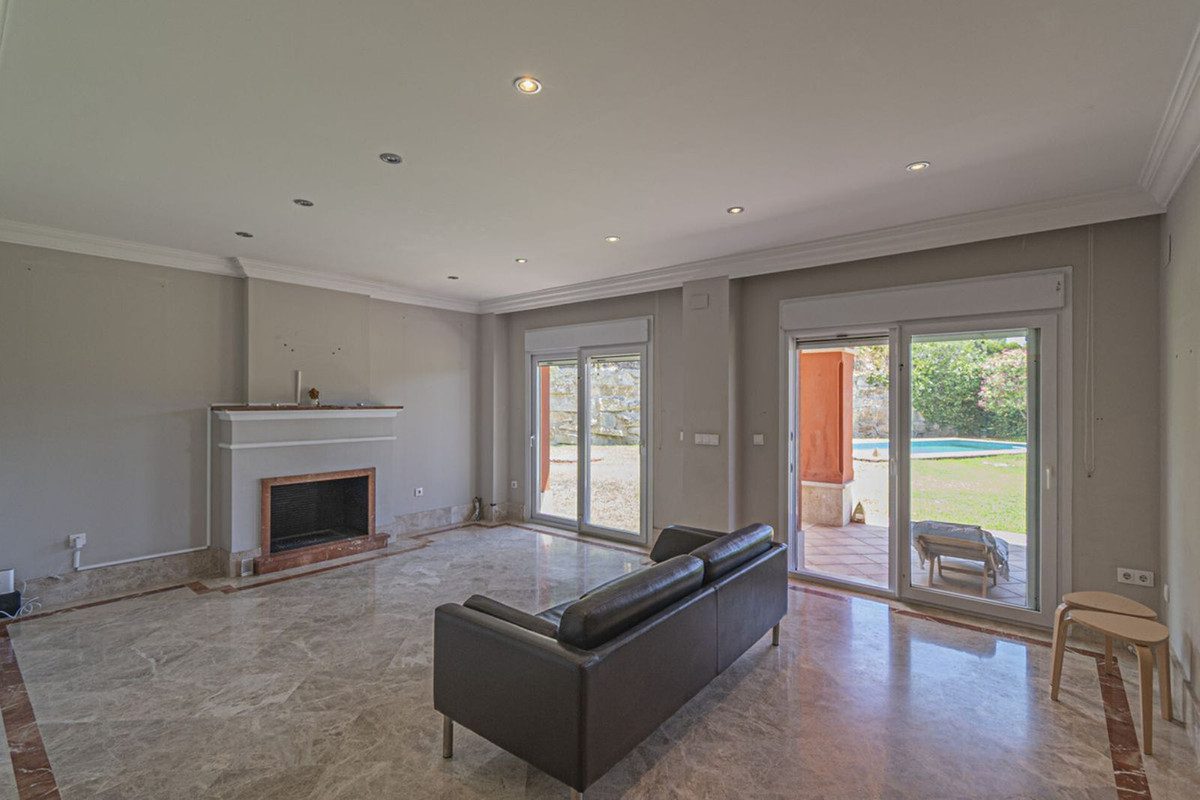 Impresionante Villa Mediterránea junto al Campo de Golf en Marbella con Seguridad 24 HorasEsta elegante villa de estilo mediterráneo goza de una ubicación privilegiada junto al campo de golf, a solo minutos de las doradas playas de Bahía de Marbella y del vibrante corazón de la ciudad.La espaciosa vivienda se distribuye en dos niveles y cuenta con cuatro dormitorios (uno de ellos en la planta baja), cuatro baños, un luminoso salón con acogedora chimenea y una amplia cocina independiente.Ubicada en una parcela de más de 1.000 m², la villa ofrece bellos jardines paisajísticos y una piscina privada, ideal para disfrutar de la vida al aire libre y organizar reuniones.Se encuentra dentro de un exclusivo complejo residencial con seguridad 24 horas y piscinas comunitarias, lo que garantiza confort, estilo y tranquilidad.Una opción ideal para quienes buscan una villa de lujo cerca de las mejores playas de Marbella, prestigiosos campos de golf y todos los servicios del centro de la ciudad.La propiedad también está disponible en alquiler.Se alquila sin amueblar, con opción a amueblarla por un suplemento de 10.000 €.Contrato de alquiler de 11 meses.~