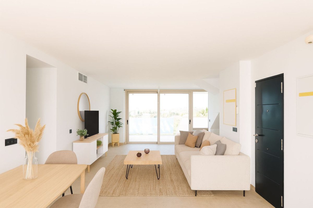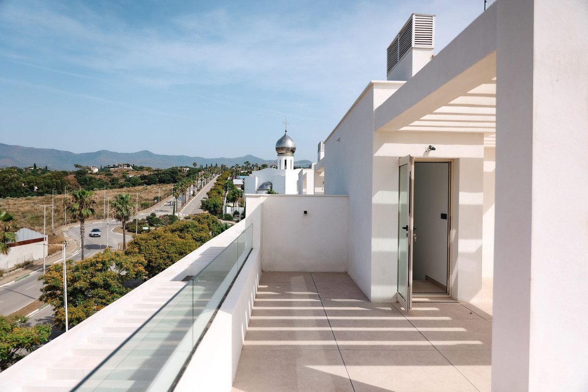 Este elegante ático dúplex con vistas al mar se encuentra en una de las zonas con mayor proyección de la Costa del Sol. A solo unos minutos de la playa tenemos la ubicación estratégica que combina tranquilidad con excelente conexión a Estepona y Marbella – todos los servicios necesarios para vivir con comodidad todo el año. Los mejores colegios internacionales, incluido el prestigioso Atlas American School. Al entrar nos encontramos con un amplio salón-comedor con mucha luz natural. Tenemos tres dormitorios y todos con acceso a la terraza y dos baños. En la planta superior, el solárium privado con espectaculares vistas panorámicas al mar.Distribuido en dos plantas, la vivienda destaca de su doble terraza: en una terraza tenemos vistas al mar y en la otra – vistas a la montaña y piscina. Incluye garaje para dos coches y trastero.Construido con materiales de alta calidad y excelentes acabados, este ático de nueva construcción destaca por su luminosidad, privacidad y eficiencia energética gracias al sistema de aerotermia. Una propiedad única que combina diseño contemporáneo, confort y una ubicación inmejorable, ideal tanto como residencia habitual como inversión segura en una zona en pleno crecimiento.~