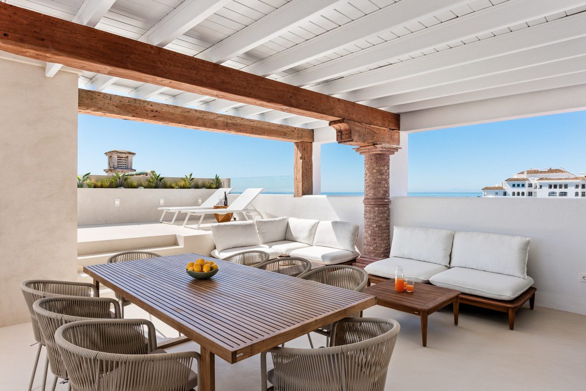 Presentamos esta impresionante propiedad en una ubicación inmejorable: un ático dúplex en el codiciado enclave de Puerto de La Duquesa, Manilva (Málaga). Con 133,51 m² construidos y una espectacular terraza de 38,02 m², esta vivienda única combina diseño contemporáneo, confort y un estilo de vida relajado junto al mar.Distribuido en dos plantas, el inmueble ofrece cuatro amplios dormitorios, tres baños completos (dos de ellos en suite) y un aseo de cortesía. La vivienda ha sido completamente renovada con materiales de alta calidad, y se entrega amueblada y lista para entrar a vivir. La cocina, moderna y funcional, se abre al salón-comedor en un espacio diáfano que conecta con una terraza descubierta con impresionantes vistas panorámicas al mar, a la costa y al puerto deportivo.Uno de los grandes atractivos de esta propiedad es su piscina compacta climatizada tipo plunge pool situada en el solárium, un lugar ideal para disfrutar del clima mediterráneo en total privacidad. Además, cuenta con aire acondicionado por planta, armarios empotrados, ascensor, zona de barbacoa y un encantador porche de madera que aporta sombra y calidez al espacio exterior.Ubicada en el corazón del puerto deportivo de La Duquesa y rodeada de todos los servicios: comercios, restaurantes, transporte, colegios y zonas de ocio, esta propiedad ofrece lo mejor de ambos mundos: tranquilidad frente al mar y un ambiente animado con todo al alcance de la mano.Una oportunidad irrepetible para adquirir una vivienda exclusiva en la Costa del Sol.Contáctenos para más información o para concertar una visita. ¡Su nuevo hogar junto al mar le espera!~