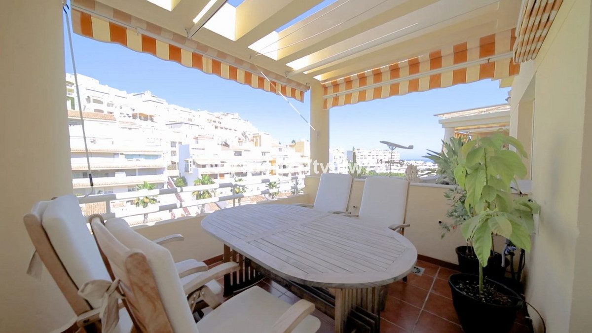 ESPECTACULAR ÁTICO REFORMADO CON VISTAS AL MARNos complace presentar en exclusiva este espectacular ático con vistas al mar. Prácticamente reformado en su totalidad este 2025 y con un concepto moderno y actual, la propiedad se ubica en una urbanización privada en una de las zonas más privilegiadas y en crecimiento de La Costa del Sol, Benalmádena.Con unas conexiones excelentes con el resto de la provincia:- El Aeropuerto se encuentra a tan sólo 15 minutos en coche- Málaga capital, a 20 minutos- Benalmádena centro, a 5 minutos en coche- La playa a tan sólo 5 minutos andandoConectada además a los principales comercios, supermercados (Carrefour, Supercor, Mercadona, etc.), gimnasios, hospitales (Vithas Xanit) y Colegios Internacionales como The Benalmádena International College (5 mins en coche), Colegio Internacional Torrequebrada (4 mins en coche) o el Novaschool Benalmádena (6 mins en coche). Además, para los amantes del golf, la urbanización se encuentra a tan sólo 5 minutos en coche del campo de golf Torrequebrada.La propiedad de 115m2 construidos, se distribuye en:- Piso principal: nada más entrar a la propiedad, llegamos a un recibidor que conecta todas las estancias. A la izquierda, tenemos el salón comedor, con amplias ventanas y una puerta corredera con acceso a la terraza. A la derecha de la entrada, encontramos la cocina con espacio para lavadero. Concretamente la cocina es uno de los espacios de la propiedad más recientemente reformados: armarios con cierre silencioso, espacio customizado de almacenaje en armarios y cajones, grifería actual, campana extractora decorativa, etc.Continuando por el pasillo, llegamos a la zona de las habitaciones. La habitación principal, cuenta con baño ensuite y amplios armarios hechos a medida completamente vestidos en su interior. Seguimos con la siguiente habitación, también con armarios empotrados y encontramos el siguiente baño, también completamente equipado, dando paso a la última, que actualmente tiene uso de oficina y además, cuenta con una pequeña terraza con vistas despejadas. – Solárium: subiendo las escaleras, accedemos a un amplio solárium de 67 mts2 con espectaculares vistas al mar. Cuenta también con un espacio de trastero muy cómodo para un extra de almacenaje sin necesidad de bajar al garaje, que además dispone de otro trastero adicional. Cabe mencionar que la plaza de garaje es muy amplia y tiene espacio para un coche grande y una moto.Toda la propiedad goza de acabados premium: suelos de tarima flotante, preinstalación de calefacción central, agua caliente con aerotermia, amplios armarios empotrados diseñados a medida, puertas nuevas, cocina de diseño, etc. Es la propiedad perfecta para familias que quieran disfrutar de una vida tranquila, con intimidad pero bien conectada. Al igual que para inversores, que busquen una buena rentabilidad para una inversión segura en la reconocida Costa del Sol.- Característica destacada 1: vistas al mar- Característica destacada 2: prácticamente reformada en su totalidadUBICACIÓNLa zona de Torrequebrada, ubicada en Benalmádena (Málaga), es una opción ideal para vivir gracias a su equilibrio perfecto entre tranquilidad y comodidad. Ofrece un entorno residencial seguro, rodeado de naturaleza y con impresionantes vistas al mar Mediterráneo. Cuenta con excelentes servicios como colegios internacionales, centros médicos, supermercados y restaurantes, lo que la convierte en un lugar cómodo para familias, jubilados y profesionales. Además, su cercanía a la playa, al campo de golf de Torrequebrada y a zonas de ocio permite disfrutar de una alta calidad de vida durante todo el año.~
