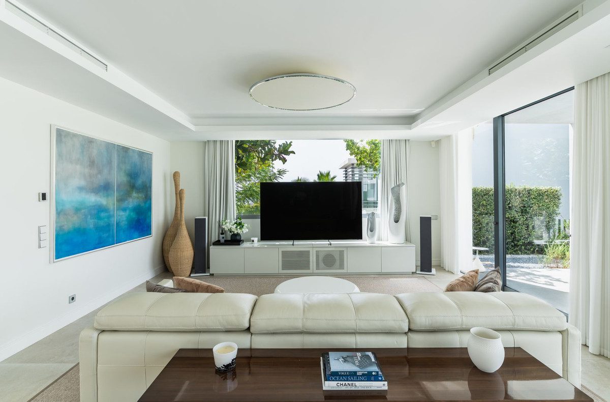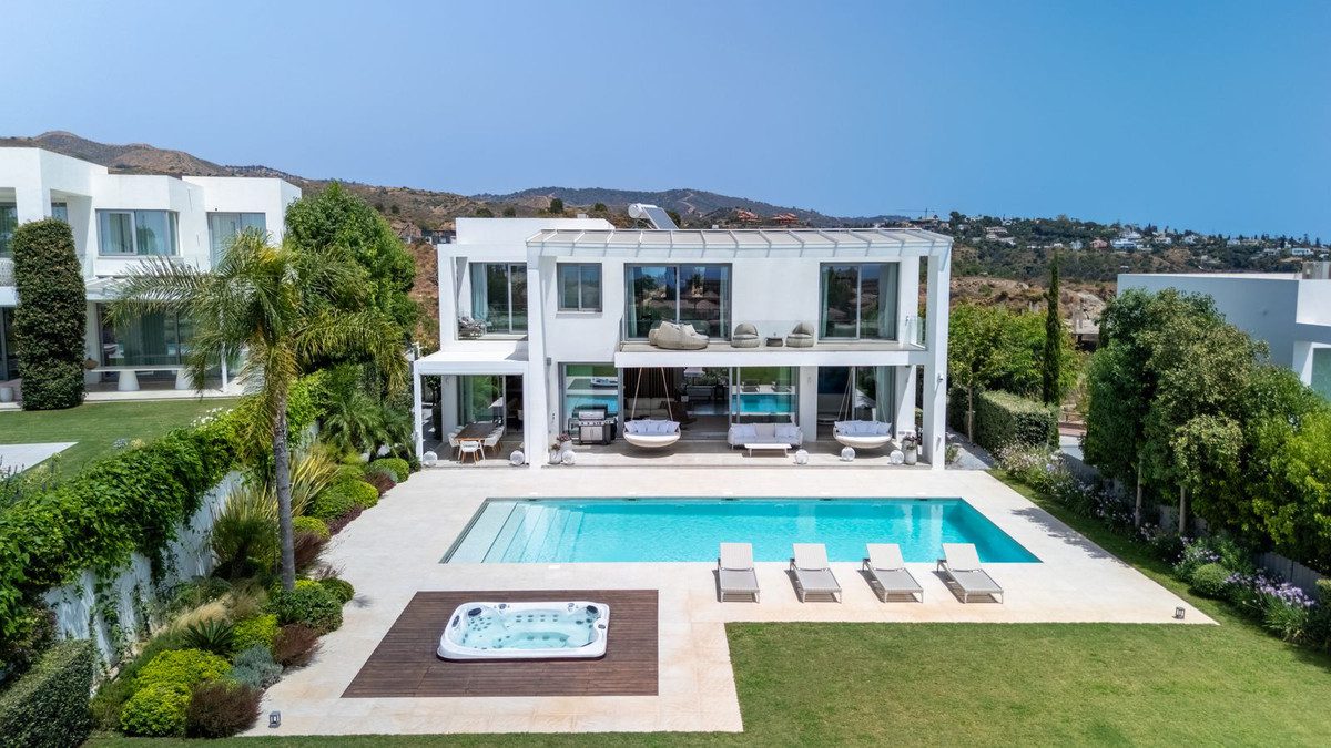 Icon Signature – Santa Clara Golf, MarbellaEsta exclusiva villa situada en la prestigiosa urbanización Santa Clara Golf ofrece unas vistas espectaculares al mar Mediterráneo, al monte La Concha y al campo de golf de Santa Clara. Ubicada en una parcela de 1450 m², con 590 m² de superficie más terrazas, ofrece una combinación perfecta de elegancia, amplitud y comodidad.Al entrar por el representativo vestíbulo, se abre inmediatamente una vista de la piscina privada, el cuidado jardín y el mar Mediterráneo brillando en la distancia. Los amplios ventanales del suelo al techo llenan la casa de abundante luz natural, creando una atmósfera de espacio, lujo y armonía con el entorno.En la planta baja hay un salón amplio y luminoso que se comunica con el comedor y la moderna cocina abierta, totalmente equipada con electrodomésticos de primera calidad. Junto a la entrada hay un despacho, un vestidor y un aseo para invitados.En la primera planta se encuentra el dormitorio principal con un amplio vestidor y un cuarto de baño. Además, hay tres dormitorios más. Dos de ellos tienen terrazas privadas con vistas al mar.La planta baja de la villa es una zona de ocio con un elegante bar, una sala de televisión, una mesa de billar y un gimnasio totalmente equipado. También hay un cuarto de baño, un lavadero y un garaje.En el jardín hay una piscina con sistema de calefacción y refrigeración, un jacuzzi y terrazas soláriums ideales para relajarse.-Muebles de Natuzzi, Cattelan Italia y Dedon.-Calefacción por suelo radiante en toda la casa (sistema Daikin con aerotermia).-Aire acondicionado con termostatos individuales y sistema Air Zone por zonas-Sistema domótico inteligente-Sistema de alarma-Riego automático del jardínLa villa se encuentra en la lujosa urbanización de Santa Clara, cerca de prestigiosos campos de golf: Santa Clara, Río Real, Marbella Golf, Santa María y Cabopino.A 5 minutos de las mejores playas de MarbellaA 10 minutos del centro de Marbella y del centro comercial La CañadaA 30 minutos del aeropuerto internacional de MálagaEsta propiedad es una combinación de vistas espectaculares, diseño moderno y una ubicación excelente. Creada para quienes buscan un estilo de vida sofisticado en el corazón de la Costa del Sol.~