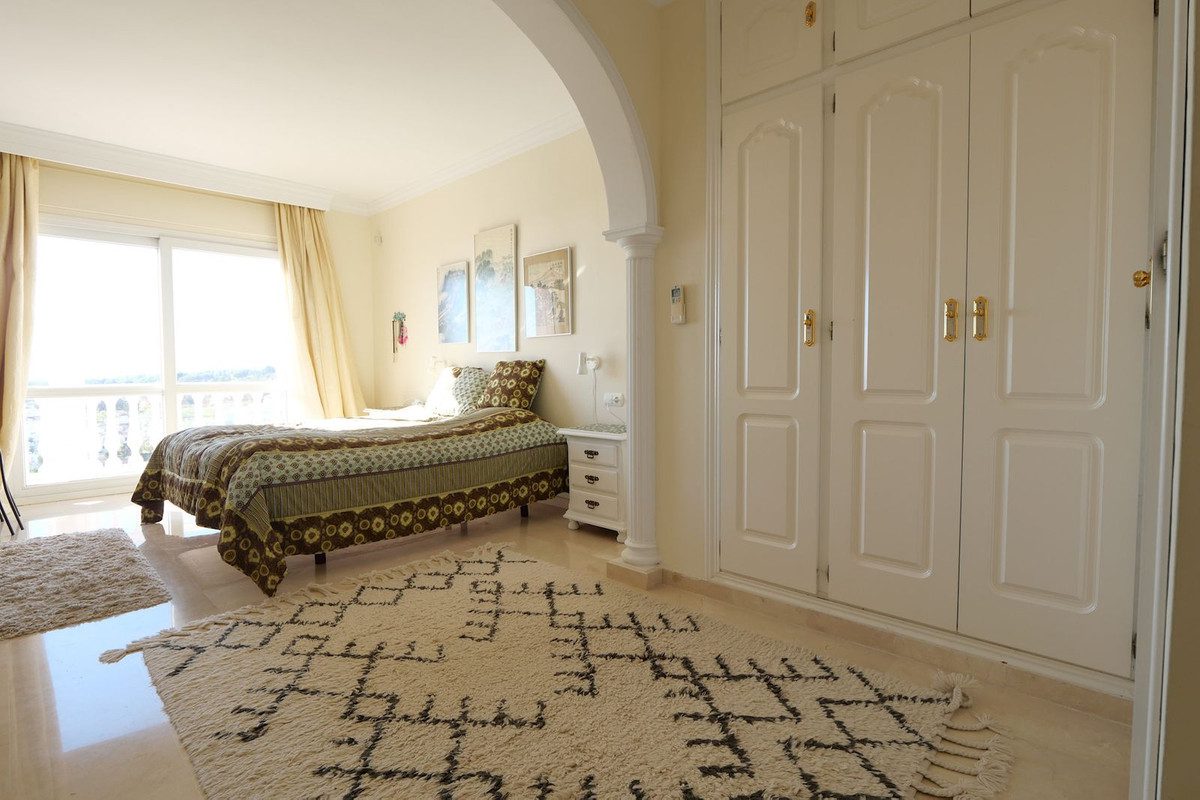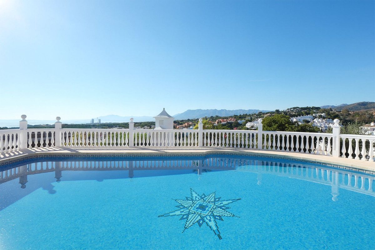 Esta lujosa propiedad se encuentra en una pequeña y exclusiva urbanización cerrada y ofrece unas de las vistas más hermosas que hemos visto en toda la costa este de Marbella, incluyendo las montañas africanas a lo lejos. La propiedad cuenta con suelos de mármol crema de alta calidad, persianas eléctricas y escalera clásica. La casa también cuenta con dormitorios más amplios de lo habitual, con vistas impresionantes. Incluye garaje privado y piscina comunitaria.~