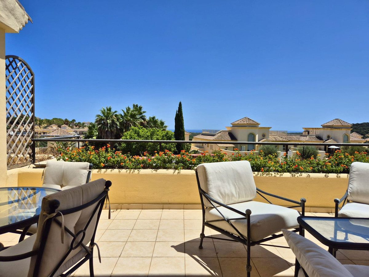 Exclusivo apartamento en San Roque Club de 3 dormitorios con vistas al marDescubre este elegante y espacioso apartamento ubicado en el exclusivo entorno de San Roque Club, ideal para los amantes del golf y quienes buscan paz y comodidad.La propiedad cuenta con 3 dormitorios en suite, un aseo de cortesía, amplia cocina independiente con zona de lavandería y dos acogedoras terrazas perfectas para relajarse y disfrutar del entorno natural. Incluye 2 plazas de garaje subterráneas, 2 trasteros y 2 plazas de buggy de golf.Ubicado en una comunidad cerrada con seguridad 24h, piscina comunitaria y jardines perfectamente cuidados A pocos pasos del club de golf y con excelente conexión a Sotogrande la playa y todos los servicios. Ideal como residencia permanente segunda vivienda o inversión con alta demanda. Un hogar completo en un entorno privilegiado!~