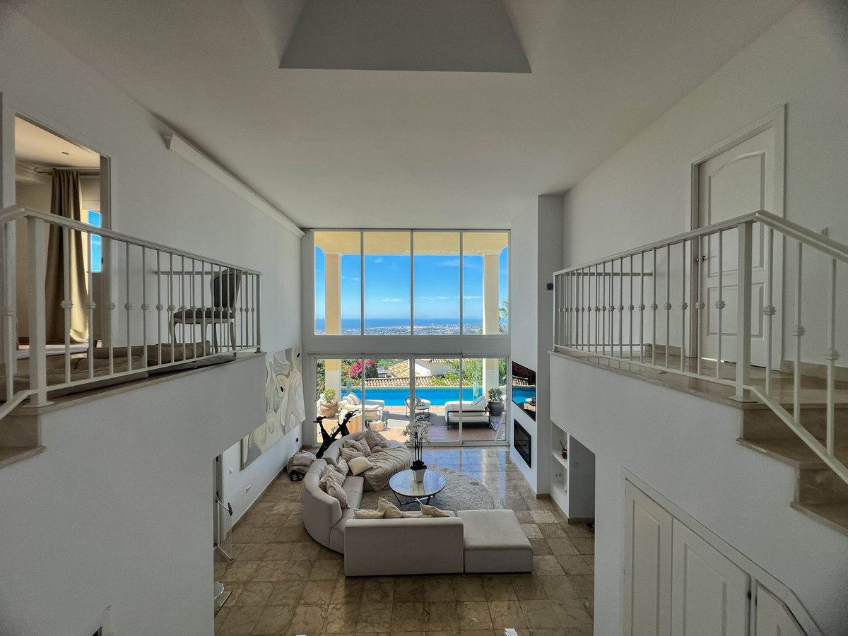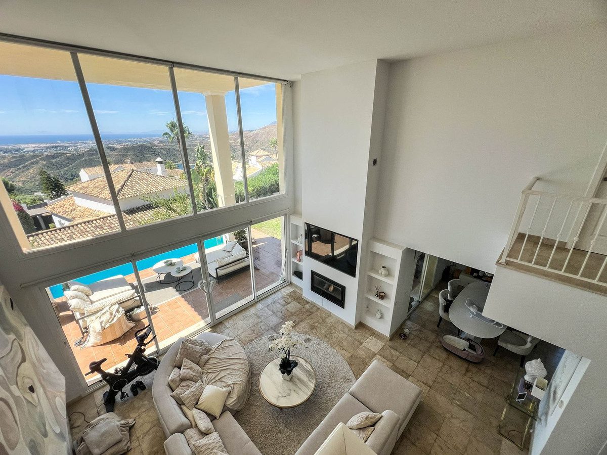¡OPORTUNIDAD ÚNICA! PRECIO REDUCIDO DE 1.790.000 € A 1.350.000 €Exclusiva Villa Independiente en Sierra Blanca Country Club con Vistas Panorámicas al Mar y GibraltarDescubre esta espectacular villa de diseño ubicada en uno de los enclaves más prestigiosos y tranquilos de Marbella. Situada dentro del exclusivo Sierra Blanca Country Club, esta propiedad ofrece amplias vistas abiertas al mar Mediterráneo, Gibraltar e incluso la costa africana — un auténtico refugio rodeado de naturaleza y privacidad.Con 349 m² construidos, esta villa impresiona desde el primer momento: un impresionante salón con techos de 6 metros de altura, grandes ventanales y una luz natural excepcional que realza su elegancia y amplitud.Distribución• 3 amplios dormitorios en suite con armarios empotrados• 3 baños completos en piedra natural + 1 aseo de invitados• Luminoso salón-comedor con chimenea nueva y acceso directo al jardín• Cocina alemana de concepto abierto de ALMILMÖ, totalmente equipada con isla central y zona de desayuno• Se vende completamente amueblada — moderna, elegante y lista para entrar a vivirExterior• Piscina privada estilo infinity con impresionantes vistas panorámicas• Precioso jardín diseñado con zonas chill-out y área de barbacoa• Amplia zona de aparcamiento privado para hasta 8 vehículosPunto Destacado para InversoresLa villa cuenta con licencia turística activa, lo que permite alquiler vacacional y garantiza un excelente potencial de rentabilidad — una inversión de primer nivel en la Costa del Sol.Una oportunidad única con un precio recién reducido. ¡No la dejes escapar!~