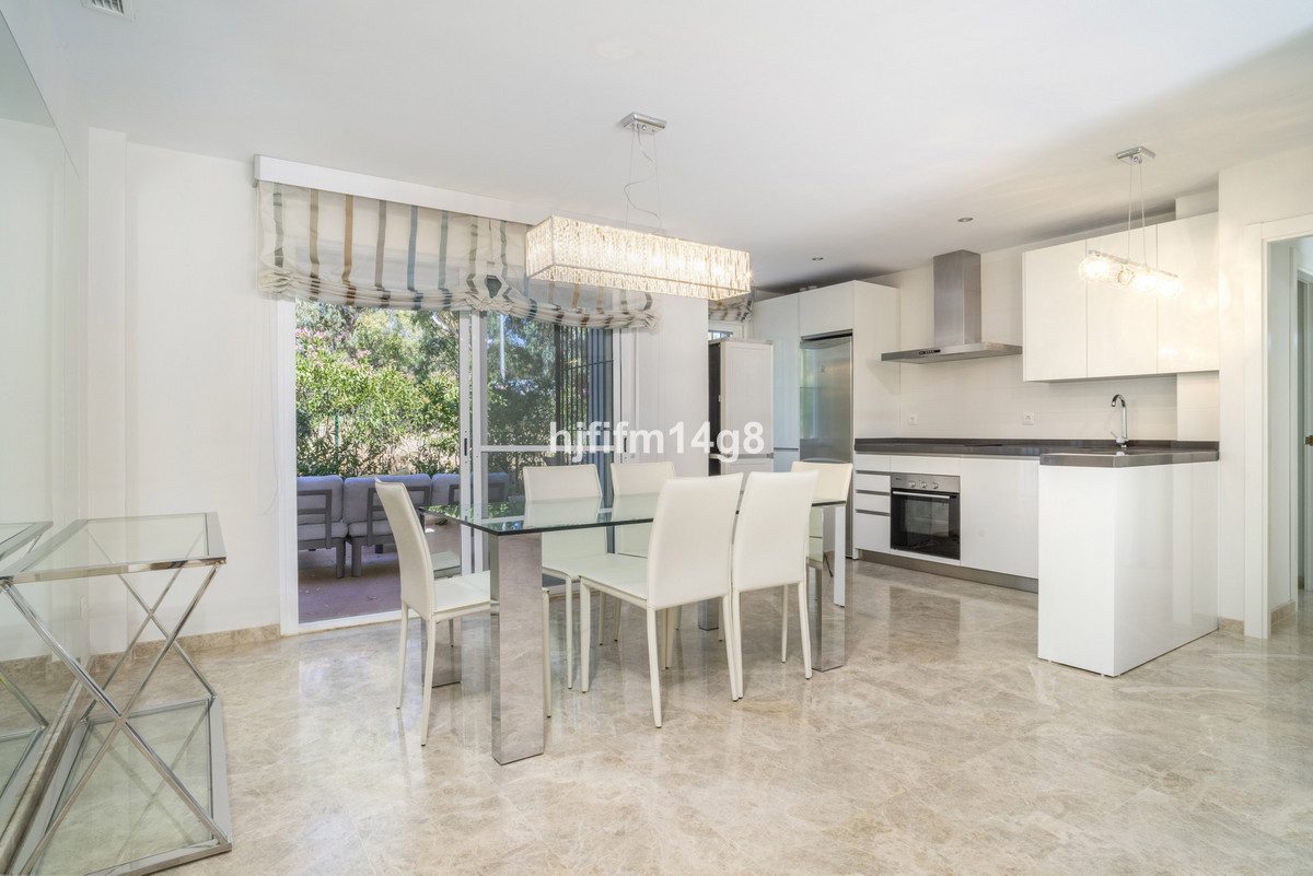 Ubicado en uno de los bloques más nuevos del codiciado complejo Los Naranjos de Marbella, este hermoso apartamento en planta baja ofrece la combinación perfecta de comodidad moderna, abundante luz natural y una ubicación inmejorable.Lo que distingue a esta propiedad es su maravillosa luminosidad y sensación de amplitud. La cocina, el comedor y el salón de concepto abierto constituyen el corazón del hogar, y al entrar, la luz del sol inunda el espacio a través de grandes puertas correderas situadas tanto al este como al oeste de la estancia. Ya sea que prefiera tomar el café de la mañana al sol o disfrutar de una zona sombreada por la tarde, siempre tendrá la opción de elegir la terraza que mejor se adapte a su estado de ánimo.El apartamento dispone de dos dormitorios bien proporcionados. El dormitorio principal cuenta con baño en suite y acceso directo a una de las terrazas, creando una perfecta integración entre el interior y el exterior. El segundo dormitorio está atendido por un baño completo para invitados, ubicado en el pasillo y equipado con ducha, lo que lo hace ideal para familiares o visitantes.Entre las características adicionales se incluye una plaza de aparcamiento asignada en el garaje subterráneo, mientras que en el exterior hay abundante aparcamiento en la calle para invitados o un segundo vehículo.Los Naranjos de Marbella es una comunidad residencial consolidada y cuidadosamente mantenida, con encanto andaluz, amplias avenidas y exuberantes jardines. Se encuentra a pocos minutos en coche, o a un agradable paseo, del glamuroso puerto deportivo de Puerto Banús, con sus boutiques de diseño, restaurantes y animada vida nocturna. Las playas y el famoso centro comercial El Corte Inglés también están muy cerca, así como supermercados locales, cafeterías y campos de golf.Tanto si busca una elegante vivienda vacacional, una inversión segura o una residencia cómoda para todo el año, este apartamento ofrece una base ideal en Marbella, en la Costa del Sol.~