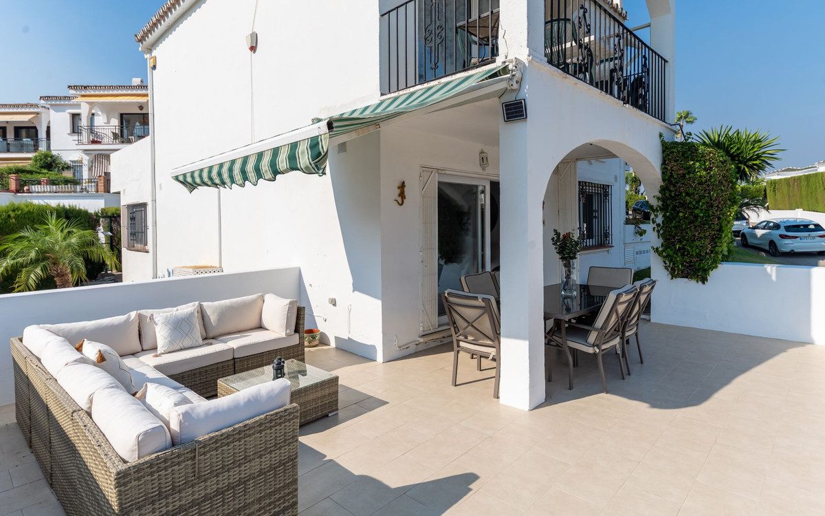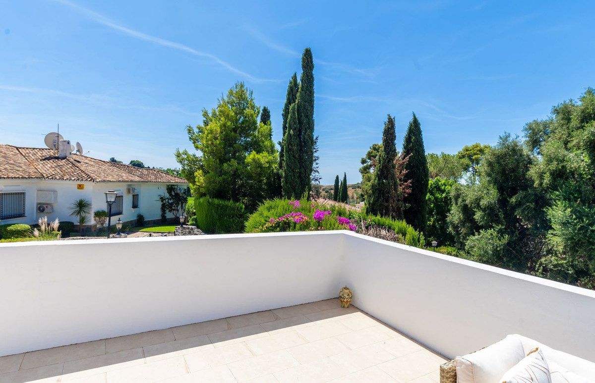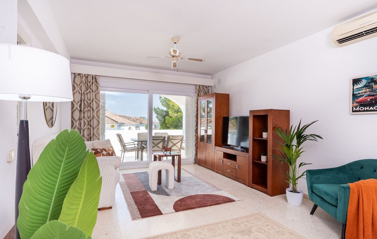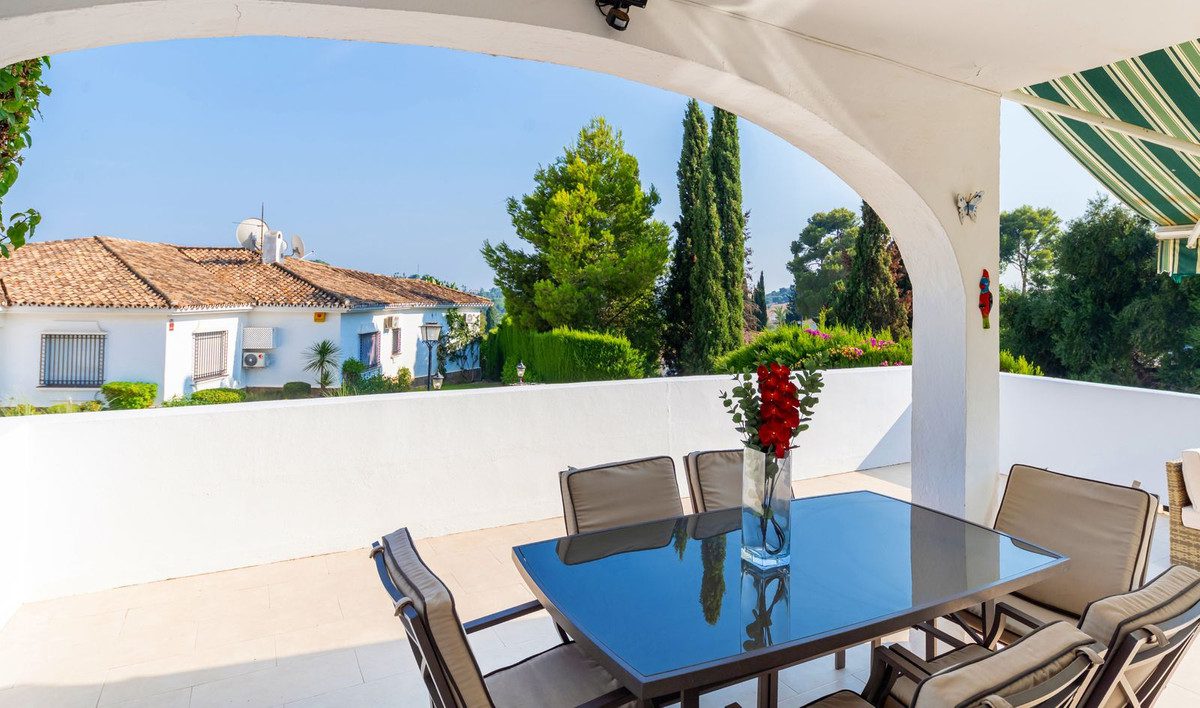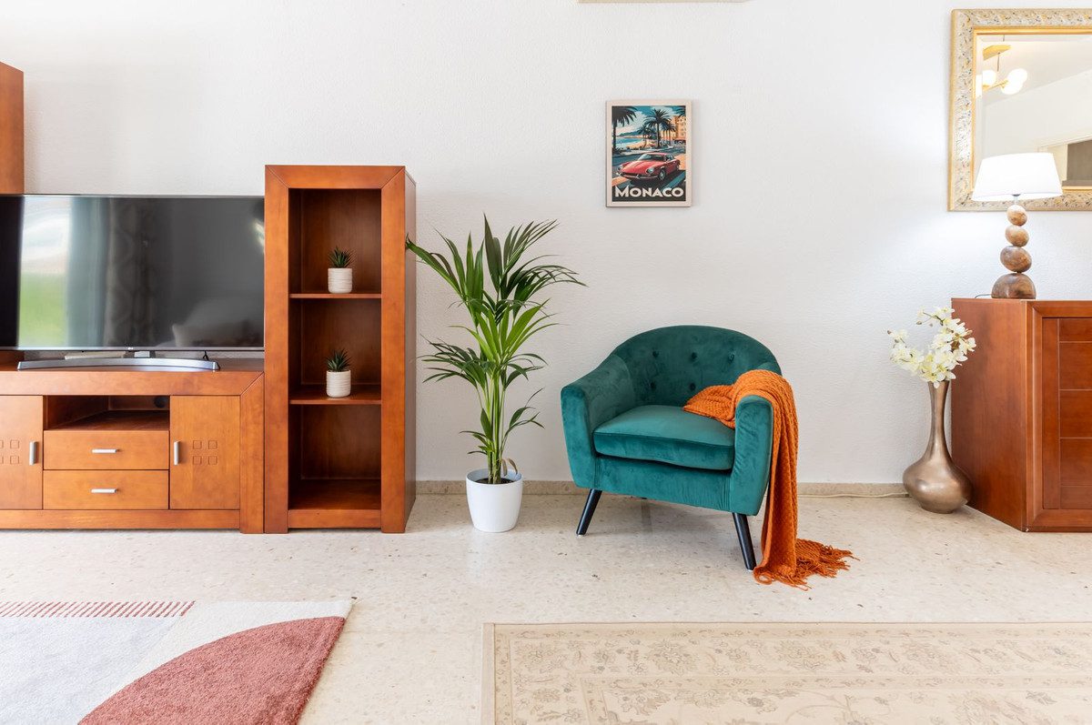 Apartamento esquinero excepcionalmente espacioso y único, con orientación sur y garaje propio en el sótano, situado en la prestigiosa comunidad andaluza de El Paraíso Alto, Benahavís, una zona de excepcional belleza natural y tranquilidad, elegida constantemente por profesionales del sector como una de las mejores opciones residenciales y de golf. Diseñado con magníficos jardines tropicales, ofrece acceso al famoso green del campo de golf de 18 hoyos de El Paraíso Alto.Desde el cuidado entorno de palmeras tropicales de la comunidad, una entrada cerrada con un fabuloso jardín de 60 m² adyacente al apartamento da acceso a la entrada principal de la propiedad.Al entrar, una impecable cocina semiabierta de roble oscuro, completamente renovada y con electrodomésticos de alta gama, se encuentra frente a un espacioso salón-comedor con aire acondicionado y muebles contemporáneos de madera de acacia. Ventanas climatizadas de triple acristalamiento de última generación en todo el apartamento, con aire acondicionado y ventiladores de techo eléctricos, lámparas de alta gama, cortinas a medida, persianas correderas andaluzas y un exquisito suelo pulido original de color blanco crema con efecto nácar. El salón cuenta con amplios ventanales que ofrecen vistas al exquisito entorno residencial andaluz, con una terraza exterior de 30 m², totalmente renovada, tanto cerrada como abierta, ideal para comer, tomar el sol y relajarse, equipada con un toldo. A un jardín adicional a nivel de la terraza se accede desde una entrada a la terraza, construida a medida, con escaleras que conducen directamente al garaje para un coche y a un patio exterior para aparcar otro.El dormitorio principal, con baño en suite y muebles de caoba, ofrece vistas parciales al campo de golf y al entorno andaluz. El baño en suite cuenta con una ducha a ras de suelo notablemente espaciosa.Un largo pasillo privado, al que se accede desde el salón, conduce a un baño de mármol crema claro en impecables condiciones, con bañera y tocador de mármol. El dormitorio doble contiguo para invitados, equipado con dos camas individuales, armarios con paneles dobles y muebles de caoba, ofrece vistas a los senderos comunitarios rodeados de jardines de palmeras y buganvillas.El garaje incluido con la propiedad se encuentra justo debajo del apartamento y ofrece un amplio trastero interior con una pequeña ventana y su propia puerta de garaje.La piscina comunitaria, impecablemente mantenida, ofrece impresionantes vistas al campo de golf y a La Concha, abierta las 24 horas del día, los 7 días de la semana.Todos los muebles y la decoración están incluidos en el precio.Perfecto para golfistas o familias. Ideal para vivir todo el año o para vacaciones.La Casa Club de Golf El Paraíso ofrece un restaurante y un bar con vistas al green del campo de golf, abierto todo el año.A 6 minutos en coche de las exquisitas playas y el Paseo de Costalita, Villa Padierna Club Del Mar y Club de Tenis, y del Centro Comercial Bel Air y Benavista, que ofrece servicios esenciales y una excelente selección de restaurantes internacionales.A poca distancia en coche del famoso casco histórico de Estepona, Marbella, la Milla de Oro y Puerto Banús.Seguridad 24 horas en la zona de El Paraíso Alto Benahavis.Zonas cerradas dentro de la comunidad.Listado exclusivo.Se recomienda visitarlo.~