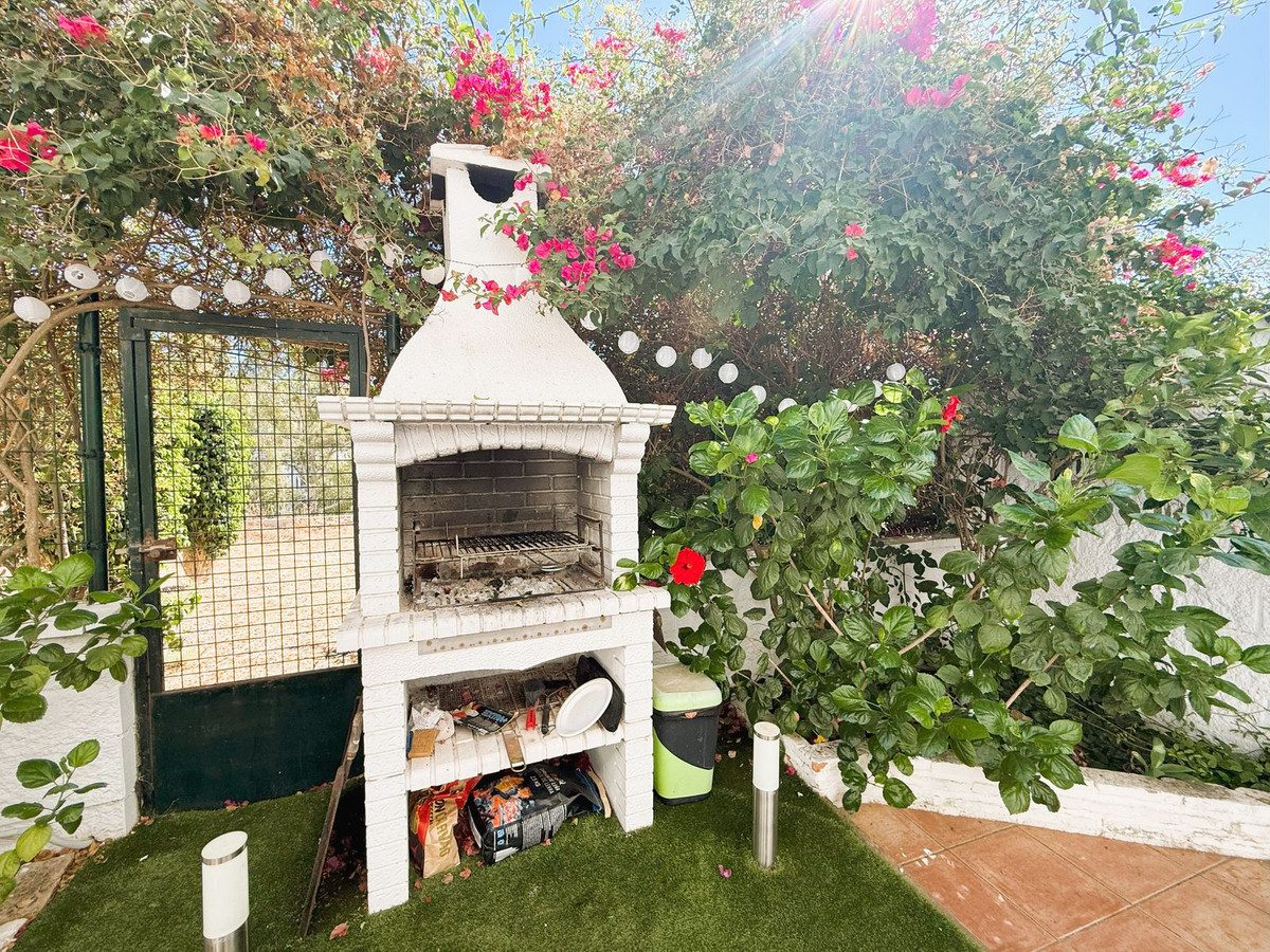 ¡Tu oasis en La Cala de Mijas te espera! Urbanización Ángel de Miraflores – Bajo con jardín privado y piscina comunitaria.Te presentamos este encantador bajo en la codiciada urbanización Ángel de Miraflores, en La Cala de Mijas —una zona tranquila, bien comunicada con los servicios locales, el transporte público y a pocos minutos de la playa. La vivienda cuenta con 83 m² muy bien distribuidos: un amplio salón-comedor conectado a una cocina funcional, totalmente equipada con todos los electrodomésticos.Desde el salón se accede a una preciosa terraza acristalada con sistema Lumon, perfecta para disfrutar todo el año, que da paso a un jardín privado de 37 m² con zona de barbacoa: el rincón perfecto para tus momentos al aire libre.Dispone de 2 dormitorios luminosos, equipados con ventiladores de techo, y 2 baños completos —uno con ducha y otro con bañera. La vivienda cuenta con aire acondicionado en la zona principal, toldo eléctrico en la terraza, y mosquiteras instaladas para mayor comodidad.Ubicada en una urbanización muy bien cuidada, con una gran piscina comunitaria, piscina infantil y agradables zonas verde, la propiedad incluye también una plaza de garaje y un trastero.Una opción ideal tanto para vivir todo el año como para disfrutar tus vacaciones o invertir en una de las zonas más deseadas de la Costa del Sol. ¡Contáctanos y ven a visitarla!~
