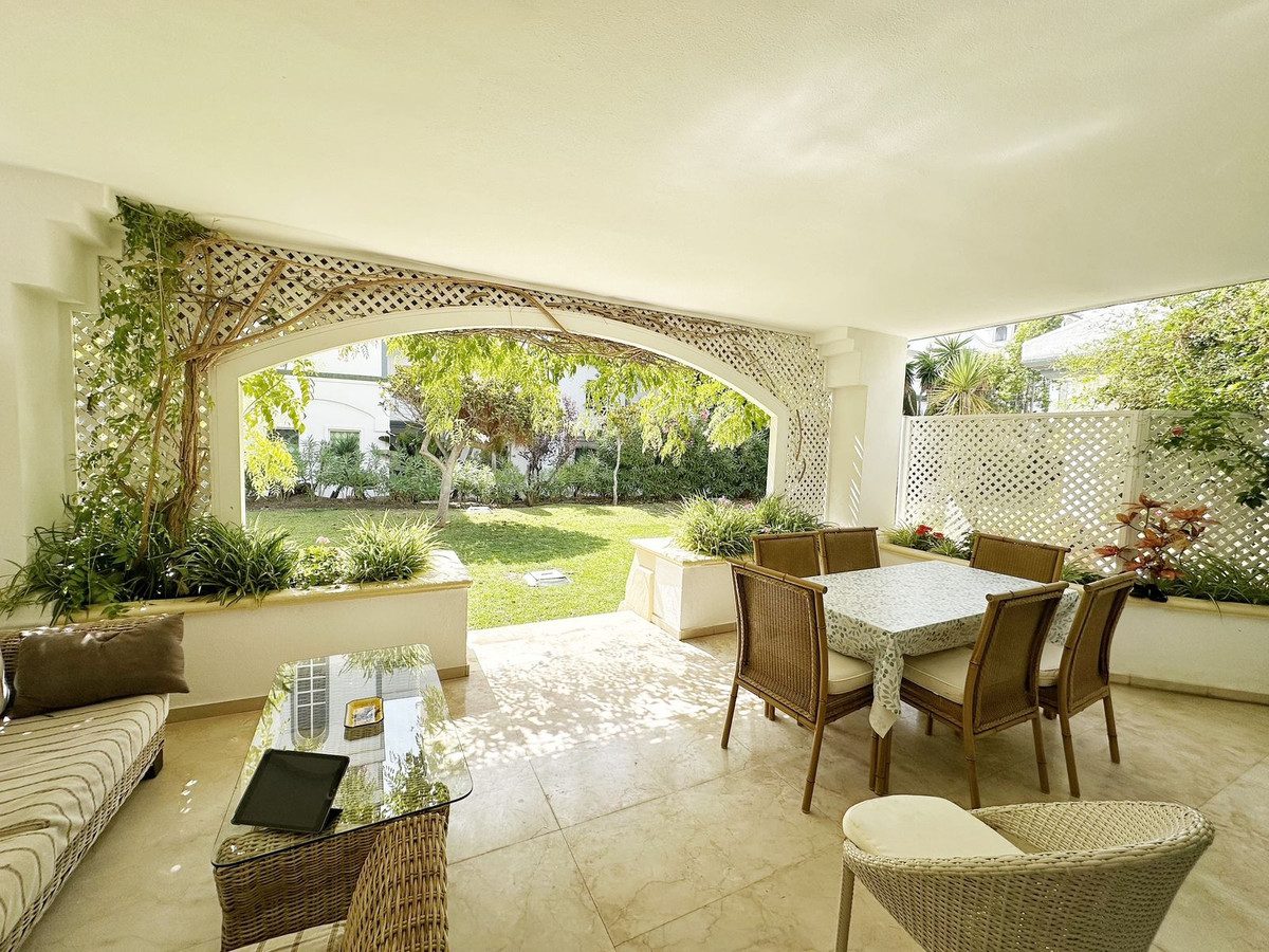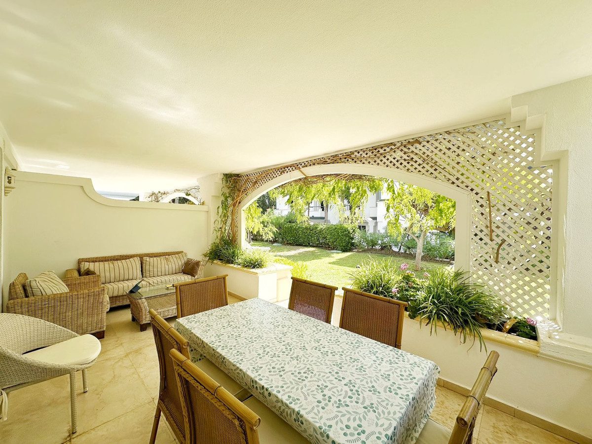 Descubra el privilegio de vivir en Dominion Beach, uno de los complejos residenciales más prestigiosos de la Nueva Milla de Oro de Estepona, a solo unos pasos de la playa y rodeado de un entorno exclusivo y tranquilo.Este amplio apartamento en planta baja cuenta con 2 dormitorios y 2 baños, con la posibilidad de añadir un tercer dormitorio, lo que lo convierte en una opción ideal tanto para familias como para quienes buscan un espacio adicional para invitados o despacho.Características principales:Ubicación privilegiada en segunda línea de playa dentro de una urbanización cerrada y vigilada 24h.Luminoso salón-comedor con acceso a una amplia terraza cubierta, perfecta para disfrutar del clima mediterráneo durante todo el año.Cocina totalmente equipada y espacios interiores amplios y funcionales.Plaza de aparcamiento subterráneo y trastero incluidos.Zonas comunes de alto nivel con piscinas, jardines tropicales, bar, restaurante y estudio de pilates.Acceso directo al paseo marítimo, que conecta con el encantador casco antiguo de Estepona y, en dirección opuesta, con San Pedro de Alcántara y Marbella, ideal para pasear, correr o ir en bicicleta.Imagine empezar el día con un paseo junto al mar y volver después a su oasis privado rodeado de jardines exuberantes. Ya sea como residencia permanente, casa de vacaciones o inversión con alta rentabilidad en alquiler, este apartamento reúne todo lo que se busca en la Costa del Sol: comodidad, exclusividad y una ubicación inmejorable.Una oportunidad única para mejorar su estilo de vida en Estepona.~