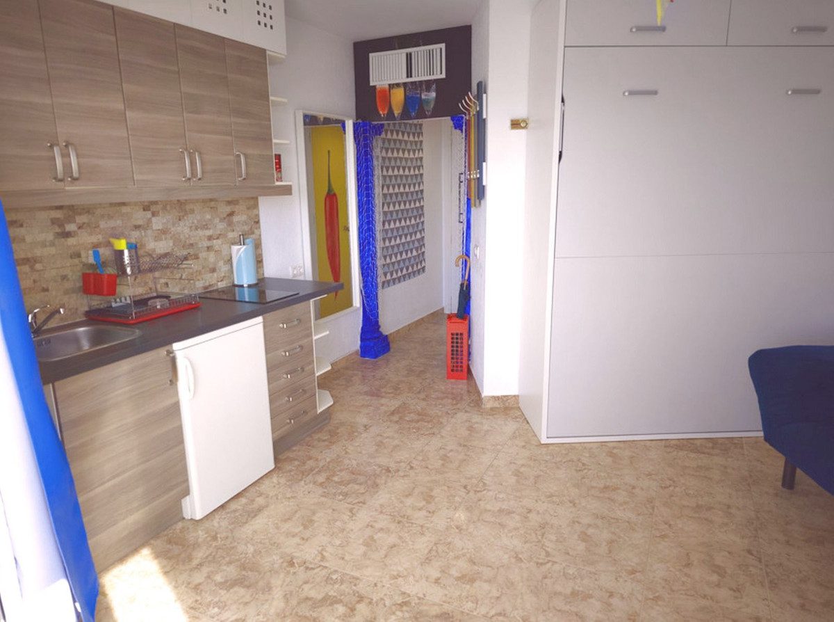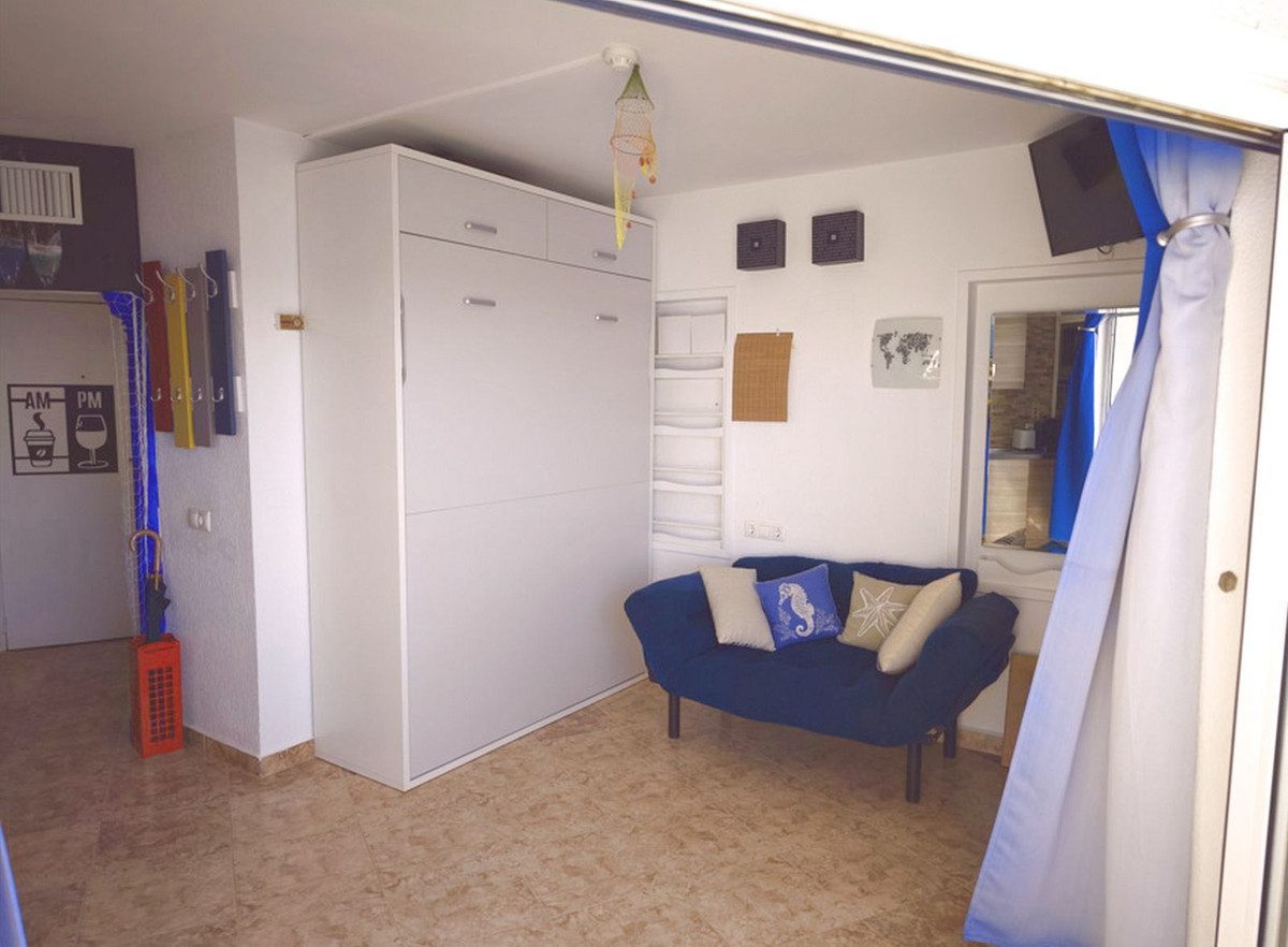 Descubre este fantástico estudio situado en una ubicación privilegiada, frente a la hermosa playa de Fuengirola.Con impresionantes vistas panorámicas al mar, tendrás el privilegio de disfrutar tanto del amanecer como del atardecer desde la comodidad de tu hogar.El espacio incluye un acogedor salón con cocina integrada y una cama convertible que se oculta discretamente dentro del armario para maximizar el área útil.Además, cuenta con un baño completo y una maravillosa terraza donde podrás relajarte mientras contemplas las olas. Este inmueble está estratégicamente ubicado a solo un minuto a pie del encantador casco antiguo y el puerto deportivo; su localización es ideal tanto para residentes como para turistas que buscan lo mejor de la Costa del Sol. La comunidad tiene un coste mensual accesible que abarca agua, luz y seguridad por tan solo 150€.Esta propiedad representa una oportunidad excepcional ya sea como residencia habitual o segunda vivienda junto al mar. Estamos disponibles para coordinar visitas sin compromiso alguno.En cumplimiento del Decreto de la Junta de Andalucía 218/2005 del 11 de Octubre, se informa que en el precio indicado no están incluidos los gastos inherentes a la compra de inmuebles según las leyes vigentes (ITP ó IVA, gastos notariales, gastos registrales, gestoría)Los datos expuestos son meramente informativos y no tienen valor contractual. La oferta se sujeta a errores, cambios de precio, omisión, disponibilidad y/o retirada del mercado sin aviso previo~