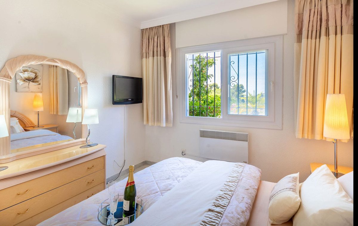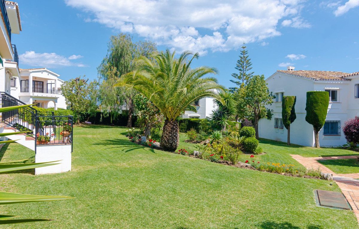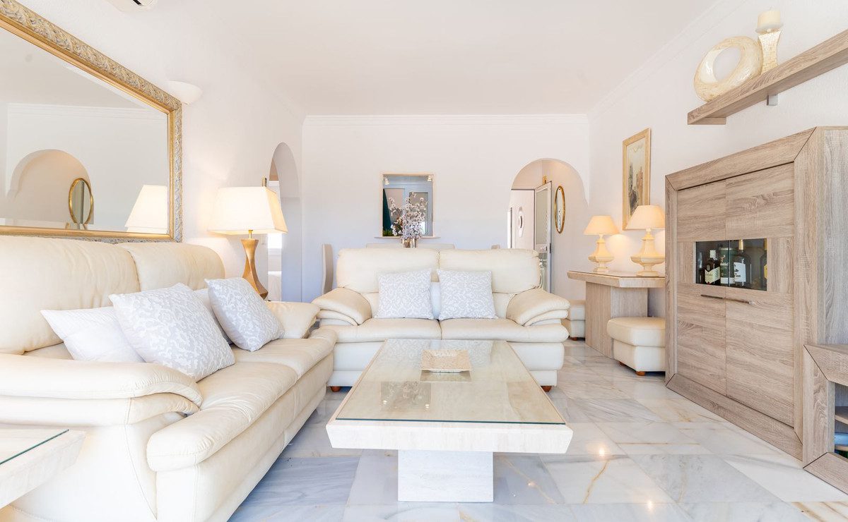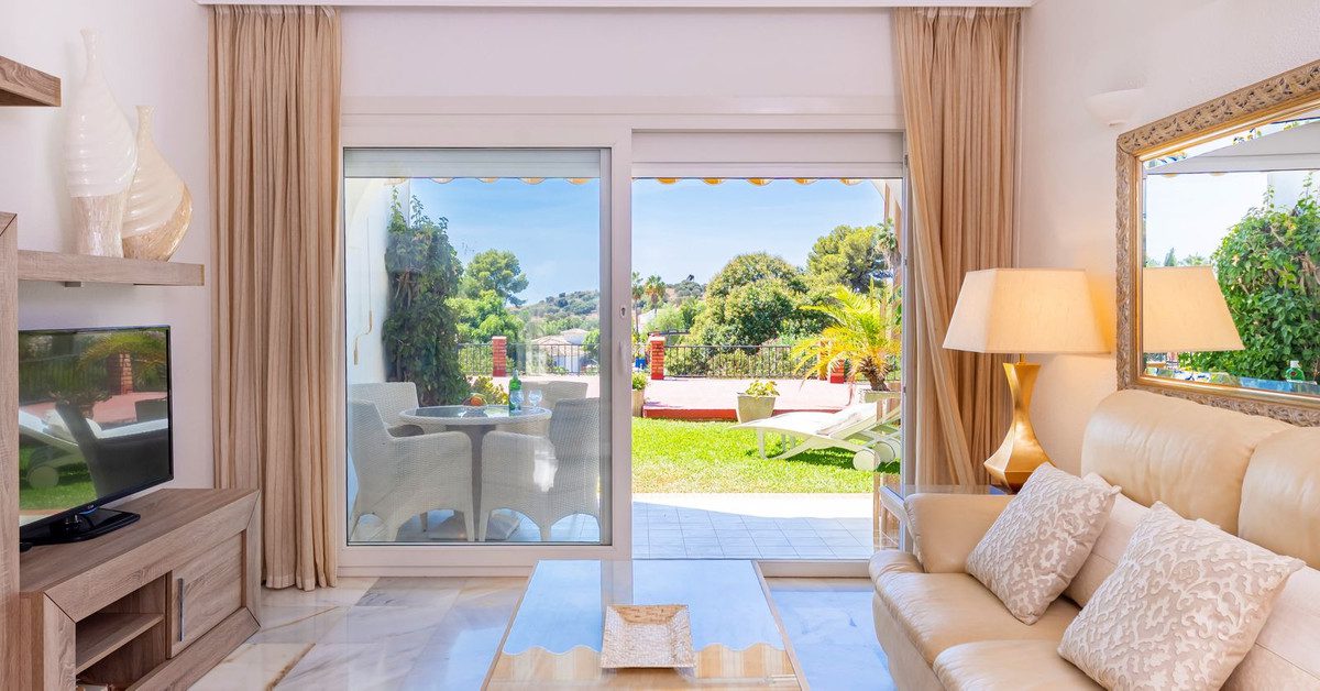 Excepcional y exquisito apartamento de una sola planta con jardín, con interiores de alta calidad y vistas tropicales abiertas, situado en El Paraíso Alto, Benahavis. Con una ubicación envidiable en una prestigiosa comunidad andaluza, elegida constantemente por profesionales del sector como una de las mejores opciones residenciales y de golf, está diseñado con magníficos jardines tropicales y acceso directo al famoso green del campo de golf de 18 hoyos de El Paraíso. La propiedad se beneficia de su ubicación en esquina, rodeada de impecables jardines tropicales con palmeras y flores, que ofrecen vistas tropicales abiertas, con vistas lejanas al campo de golf y al mar desde el jardín.Interior excepcionalmente bien equipado y elegante, con muebles de lujo incluidos, complementado con nuevos e impecables suelos de mármol blanco.Desde la entrada, que consta de un patio cerrado de estilo andaluz con trastero y servicios integrados, la puerta de entrada da acceso al pasillo, que da acceso a una lujosa cocina completamente renovada con paneles blancos estilo Mayfair, equipada con electrodomésticos Bosch integrados y superficies de granito gris de lujo con una ventana que realza las hermosas vistas. Impresionante salón-comedor de planta abierta con muebles de mármol crema de lujo, sofás de cuero crema claro a juego, muebles altos de roble claro y ventanales de alta gama que ofrecen vistas exquisitas y acceso a la terraza exterior para comer y relajarse, con un amplio jardín situado frente a la terraza. El dormitorio principal cuenta con una suite con muebles lacados de lujo y un espacioso baño principal contiguo renovado. Impresionante dormitorio doble de invitados con baño en suite renovado. Aire acondicionado en todas las estancias. La terraza exterior de la propiedad está cubierta y equipada con un toldo extensible sobre la exquisita zona de jardín, que ofrece un comedor de ratán de alta calidad y tumbonas.Televisión comunitaria, televisor LG, internet de alta velocidad Avatel y línea telefónica instalada.Exquisitos caminos de entrada con flores andaluzas, de diseño característico en la entrada de la propiedad, decoran los jardines comunitarios de los residentes.Ventanas de aluminio blanco de alta calidad con mosquiteras correderas hechas a medida en todas las zonas. Cortinas y persianas de lujo hechas a medida en toda la vivienda.Persianas persianas eléctricas instaladas.Aire acondicionado de alta calidad instalado en toda la vivienda.Servicios integrados con lavadora y secadora en la entrada.Lavavajillas integrado en la cocina.Barandillas de seguridad andaluzas en las ventanas.Requiere reparaciones estéticas en el interior.Perfecto para golfistas o familias. Ideal para vivir todo el año o para vacaciones.La Casa Club de Golf El Paraíso ofrece un restaurante y un bar con vistas al campo de golf, abierto todo el año.A 6 minutos en coche de las exquisitas playas y el Paseo de Costalita, Villa Padierna Club del Mar y Club de Tenis, y del Centro Comercial Bel Air, que ofrece servicios esenciales y una excelente selección de restaurantes.A poca distancia en coche de Estepona, Marbella, la Milla de Oro y Puerto Banús.Seguridad 24 horas en la entrada de El Paraíso Alto Benahavis.Todos los muebles están incluidos, tal como se muestran.~