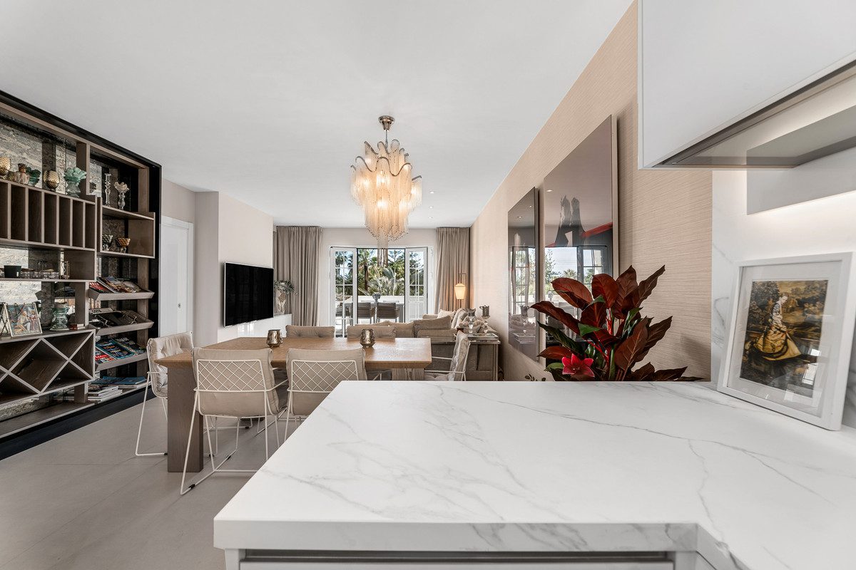 En pleno corazón de la Milla de Oro de Marbella, dentro del prestigioso resort Puente Romano, se encuentra este elegante ático de tres dormitorios. Una propiedad que combina diseño contemporáneo, amplitud y la comodidad de vivir en una de las zonas más deseadas de la Costa del Sol.Con una superficie construida de aproximadamente 175 m², la vivienda ofrece un espacioso salón con acceso directo a una terraza soleada orientada al sur. Este espacio exterior, equipado con zona de comedor y relax, invita a disfrutar de largas veladas al aire libre con vistas a los cuidados jardines y la piscina del complejo.La distribución interior está pensada para el confort: una cocina moderna de concepto abierto, dos baños cuidadosamente acabados y un dormitorio principal con acceso privado a la terraza. Cada detalle refleja un ambiente sofisticado y práctico a la vez.El apartamento cuenta con aire acondicionado, plaza de garaje, trastero y seguridad 24 horas. Como residente, tendrás acceso a un entorno incomparable con jardines de inspiración tropical, piscina comunitaria y la cercanía inmediata al mar. Además, vivir en Puente Romano significa tener a tu alcance algunos de los restaurantes más exclusivos de Marbella, boutiques de lujo y una vibrante vida social.Este ático representa no solo un hogar, sino una forma de vida privilegiada en la Costa del Sol.~