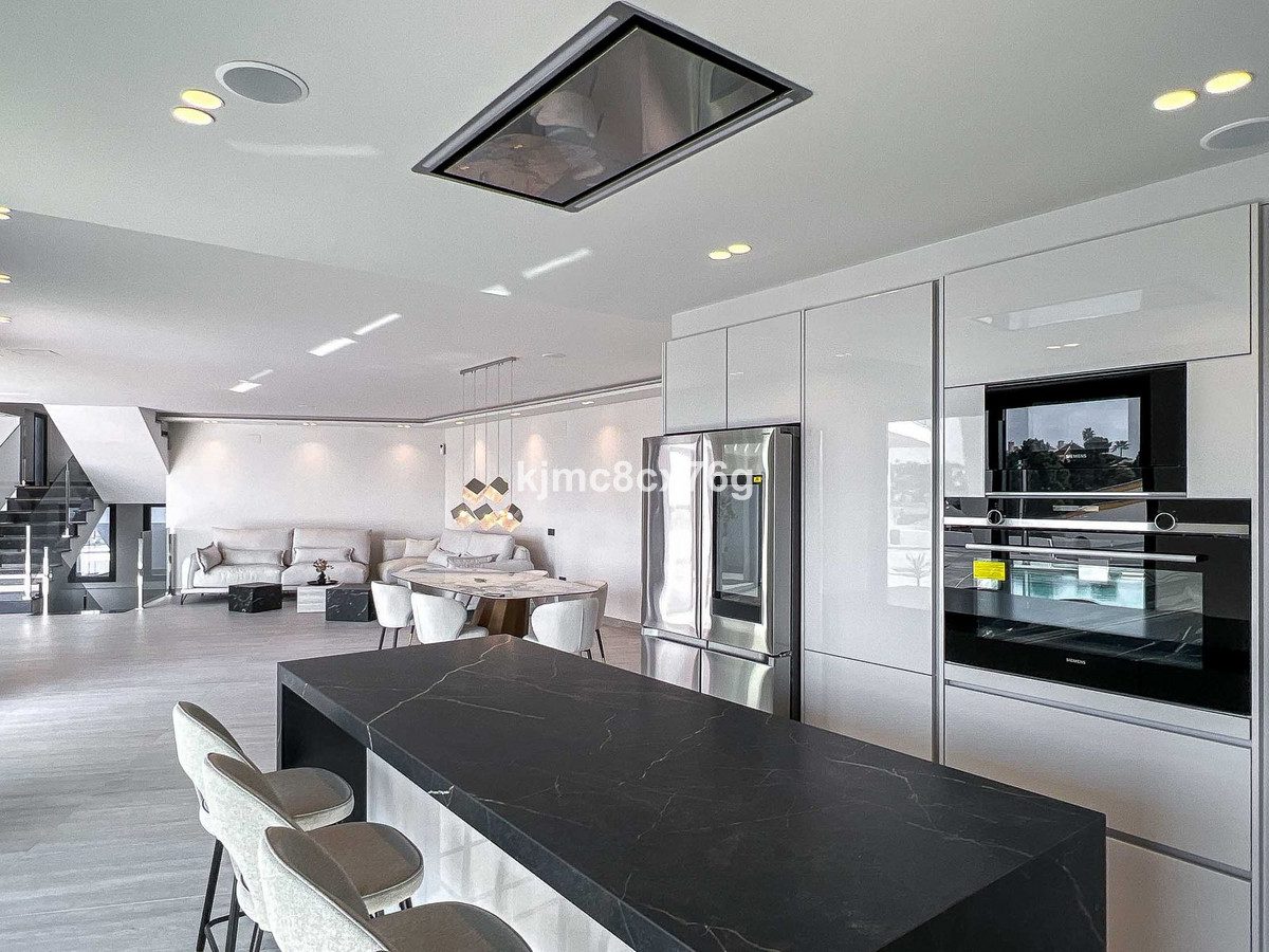 Maravillosa villa ultramoderna de nueva construcción en la urbanización El Faro, Mijas Costa, a tan solo 200 metros de la playa.Un lujo sin parangón en la zona. Espaciosa, brillante, con vistas ininterrumpidas al mar y mucha privacidad para deleitar al cliente más exigente. La propiedad consta de tres niveles unidos por escaleras y ascensor, que se distribuyen de la siguiente forma: planta principal con amplio salón-comedor con salida a su gran terraza, los jardines y la piscina, así como la zona de barbacoa. Cocina completa con lavadero independiente, un aseo y dos dormitorios ensuite, perfectos para invitados.Primera planta con dos extensos dormitorios ensuite, despacho y otro baño completo. Además, terraza de más de 100 m2 con espectaculares vistas al mar y la montaña. Por último su gran sótano con más de 250 m2 acoge un espacioso parking para varios vehículos, sala de maquinaria,y una enorme zona aprovechable para crear un apartamento de invitados, cine, bodega, sala de juegos o aquello que desee su nuevo propietario.~