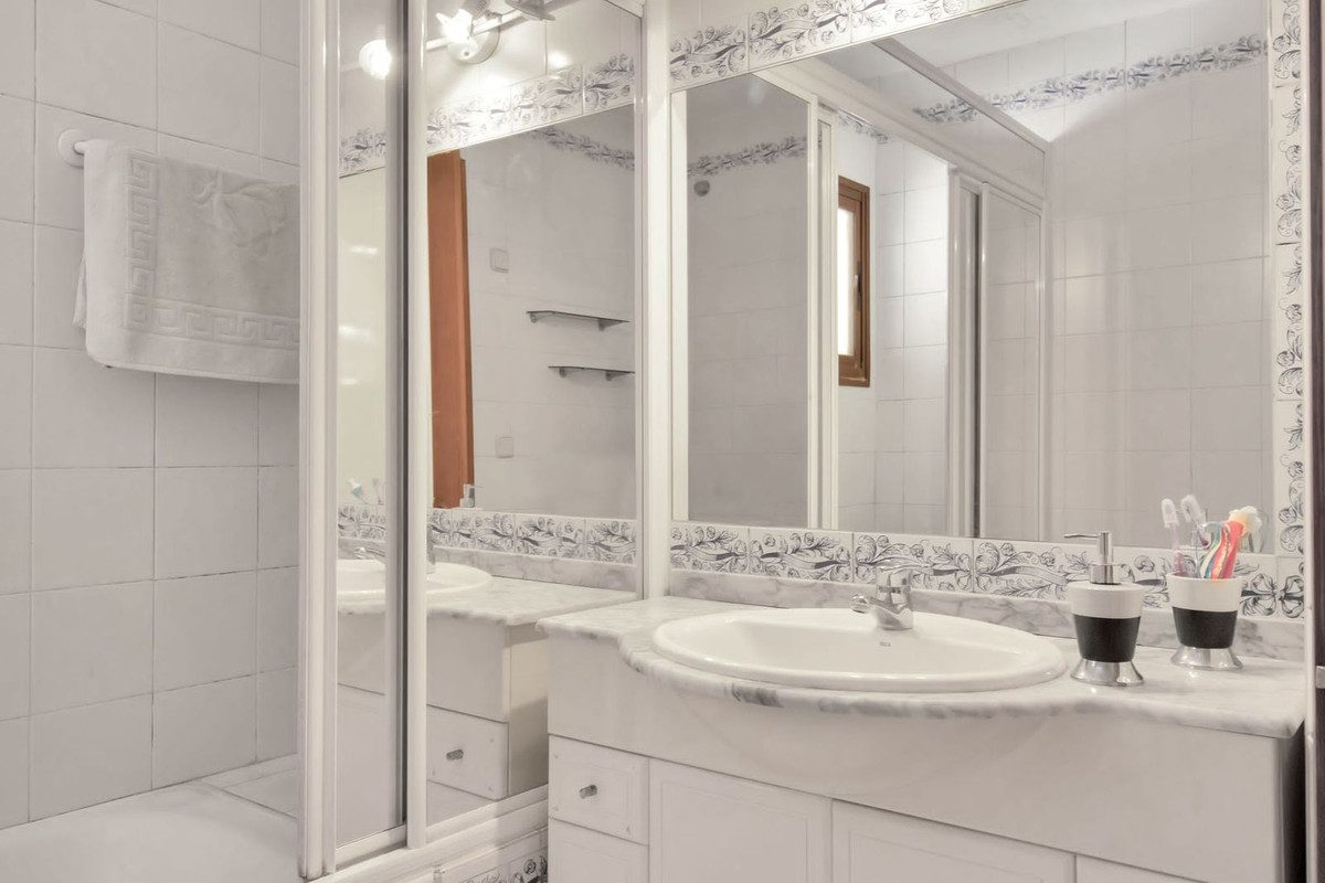 Un apartamento muy bien presentado y espacioso de 5 dormitorios y 4baños en el centro de la hermosa localidad de Benahavís. 194 m² Terraza: 20 m²La propiedad está situada en la ubicación más perfecta para acceder a todos los servicios de este pueblo.Una entrada segura al edificio conduce, tras bajar unos pocos escalones, a otra puerta privada segura donde hay un precioso patio, antes de entrar por la puerta principal de la propiedad.Una vez dentro de este espacioso apartamento, hay un largo pasillo que conduce a:La cocina totalmente equipada con horno eléctrico y placa de gas. Una gran nevera-congelador. Mesa de comedor para 6 personas. Puerta que conduce al pequeño lavadero con lavadora y secadora, además de una zona de secado exterior.Frente a la cocina hay un dormitorio, actualmente utilizado como sala de estar, que cuenta con un cuarto de baño de buen tamaño adyacente.Al final del pasillo se encuentra el elegante salón con chimenea de leña. Una habitación muy espaciosa en la que hay una zona de comedor. Unas atractivas puertas conducen a la amplia terraza, el espacio perfecto para comer al aire libre y recibir invitados.Desde el cómodo comedor, hay una atractiva escalera que conduce a la planta baja. El largo pasillo cuenta con otras 4 habitaciones y 3 baños.El dormitorio principal tiene ventanas largas que dejan entrar mucha luz. Los otros 3 dormitorios son todos amplios.Esta casa es perfecta para una familia numerosa y se ha mantenido en buen estado. Hay una zona de aparcamiento exterior junto al edificio, aunque el propietario actual alquila una plaza de aparcamiento en el garaje de enfrente.Los residentes de Benahavís tienen acceso gratuito a la magnífica piscina y los jardines comunitarios, donde el ayuntamiento ofrece una gran variedad de deportes. Cuenta con su propio campo de prácticas de golf y un magnífico campo de fútbol, pistas polideportivas y pistas de pádel.Una comunidad privilegiada en la que vivir.~