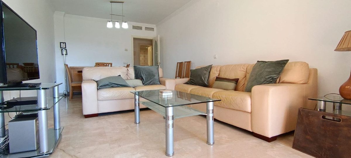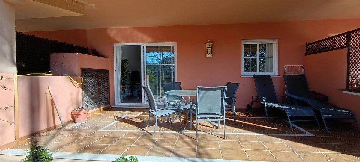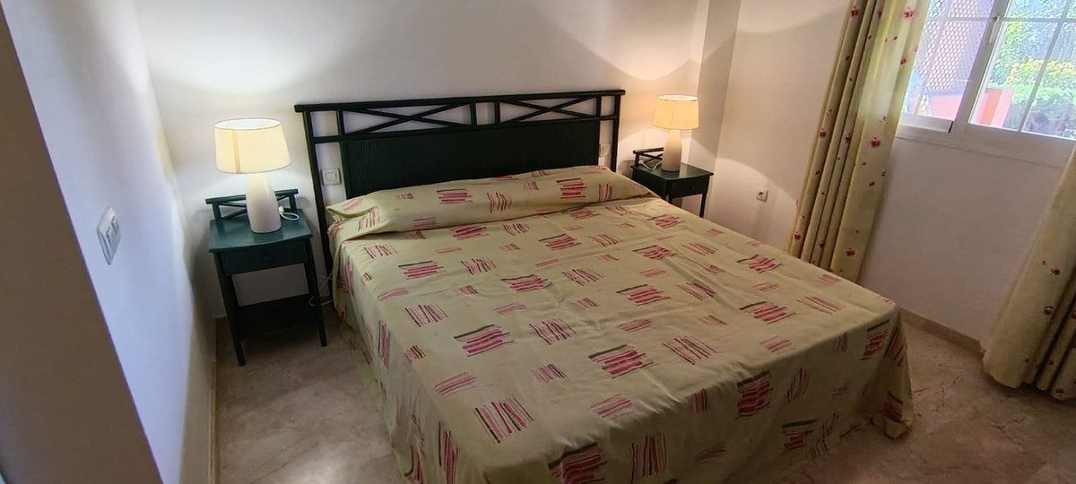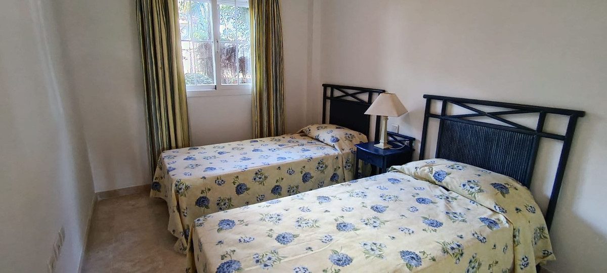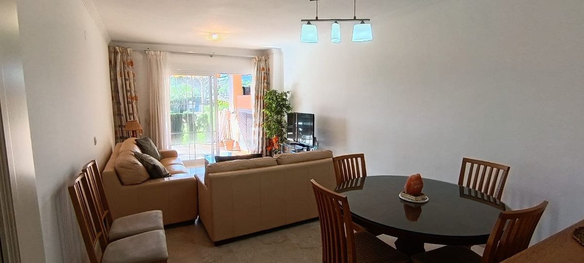 Precioso apartamento situado en la comunidad Pino Golf en Elviria. Amplio apartamento en planta baja con orientación oeste, con vistas a las zona ajardinadas comunes y piscina.Distribuido en dos dormitorios, uno de ellos en suite, otro baño para invitados , cocina equipada y amueblada ,aire acondicionado y lo mejor es una bonita terraza con jardín privado con acceso directo a una gran piscina comunitaria rodeada de hermosos jardines. Se incluye plaza de garaje privada. Lo que también hace mas atractiva esta propiedad es su ubicación a poca distancia de tiendas, restaurantes, asi como una de las mejores playas de la costa este de marbella conocida por estar Nikki Beach y otros famosos restaurantes de playa. Una inversión segura con alto potencial de alquiler turístico ya que dispone de licencia turística o bien como segunda residencia.~