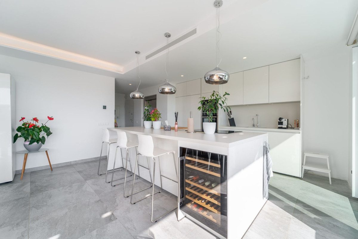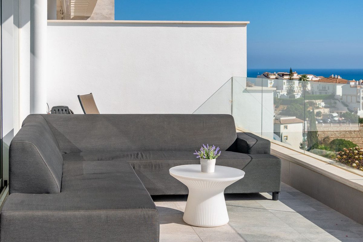 Bienvenido a este impresionante ático que ofrece impresionantes vistas panorámicas al mar. Al entrar en la propiedad, ya sea a través de la puerta principal o del ascensor privado, quedará inmediatamente cautivado por las magníficas vistas panorámicas al mar. La espaciosa sala de estar conecta perfectamente con la amplia terraza, que cuenta con una ventana frontal de 9 metros que se abre hasta una anchura de 6 metros. Esto crea un ambiente perfecto de vida interior-exterior, proporcionando mucho espacio tanto para áreas de estar como de comedor.La cocina moderna está equipada con electrodomésticos NEFF de primera línea también cuenta con una gran isla conectándola con las luminosas áreas de estar y comedor. La terraza de la sala de estar ofrece un espacio tranquilo para relajarse o disfrutar de una cena al atardecer, mientras que el barandal de vidrio asegura vistas panorámicas ininterrumpidas del mar.El ático perfectamente diseñado ofrece tres amplias habitaciones, todas con armarios empotrados y persianas eléctricas en las ventanas. La habitación principal cuenta con un baño en-suite con doble lavabo y una ducha a ras de suelo con cabezal de ducha de lluvia. Las otras dos habitaciones comparten un segundo baño, también con una ducha a ras de suelo. Además, hay una zona de lavandería con espacio adicional de almacenamiento y una lavadora/secadora, suelo radiante por toda la vivienda, aire acondicionado centralizado, y dos filtros de agua instalados.El acceso a la terraza de la azotea se realiza a través del ascensor privado o la escalera. Con 100m2 de espacio, esta área es perfecta para el entretenimiento o la relajación. Parte de la terraza está semicubierta con una pérgola, proporcionando una zona de sombra. También hay un jacuzzi y una cocina exterior, lo que hace que esta área sea perfecta para acoger reuniones con familiares y amigos.Ubicado en una zona residencial tranquila y consolidada en Benalmádena, este ático forma parte de un complejo residencial de estilo boutique de solo 20 viviendas. El complejo ofrece dos piscinas infinity, un gimnasio y un pequeño spa con sauna y jacuzzi para que los residentes disfruten.~