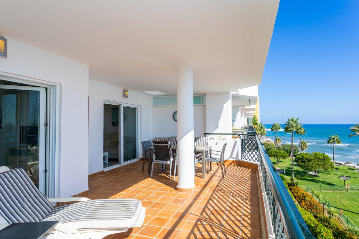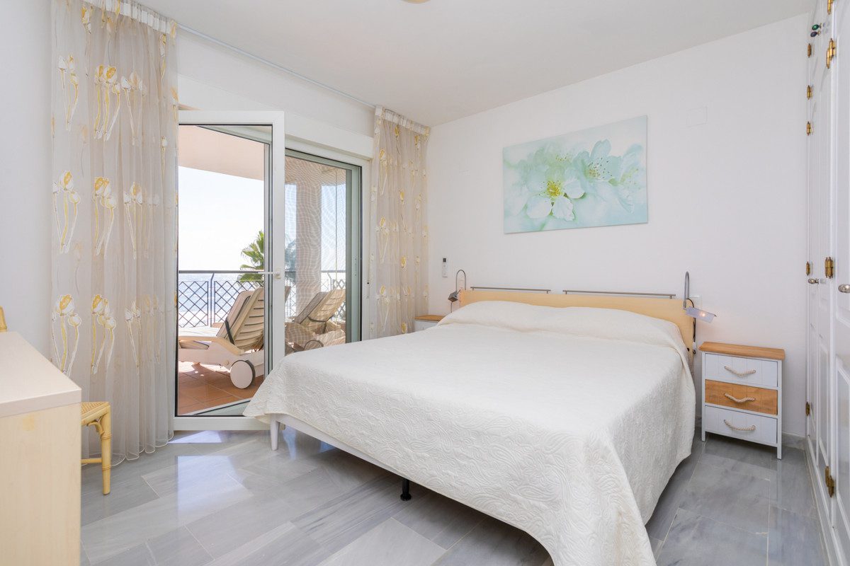 Apartamento en primera línea de playa El apartamento está ubicado en la 3. planta con increíbles vistas al mar desde la espaciosa terraza de 25 m² y el dormitorio principal y la sala de estar.El apartamento ofrece 3 dormitorios y 2 baños, el dormitorio principal con baño ensuite (con bañera y ducha separada)Acerca del Compleyo:El complejo está cerrado y la entrada solo es posible con tarjeta de seguridad.Dos piscinas de agua salada. Los dos piscinas están abierto todo el año. Salvavidas durante el horario de apertura de verano. El bar de la piscina esta abierto desde el 01. de mayo hasta septiembre. Si el estado del tiempo es perfecto, el tiempo de apertura puede variar de abril a octubre.. El bar de la piscina es el lugar perfecto para ensaladas, snacks y bebidas. Acceso al paseo marítimo de madera a través del jardín comunitario. Comer y comprar:Directamente en la playa se encuentra el restaurante de pescado quot; Mi Capricho quot; (50 metros) quot; El Pirataquot; (500 metros) y el quot;Chiringuito La Luna Beach quot; con camas y sombrillas. (7 minutos a pie)A pocos pasos se encuentran supermercados, farmacias, bancos, restaurantes y bares. La Cala (5 kms), Fuengirola (19kms) y Marbella (14kms), con un servicio dos veces por hora, están muy cerca. A pocos kilómetros hay una selección de campos de golf, parques de aventura y entretenimiento~