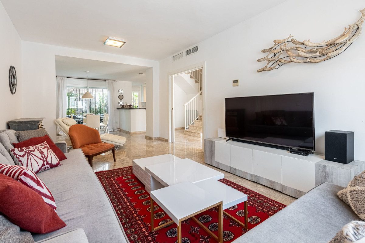 Luminosa adosada de esquina en Los Naranjos de Marbella, a solo 1,5 km de la playa y Puerto Banús.Ubicada en la prestigiosa urbanización de Los Naranjos de Marbella, esta luminosa y moderna vivienda pareada ofrece la combinación perfecta entre confort, estilo y ubicación. A tan solo 1,5 km de la playa y del exclusivo Puerto Banús, a tan solo un paseo por una gran avenida. Construida en 2015, la propiedad se distribuye en dos plantas y cuenta con 3 amplios dormitorios y 3 baños completos. La planta principal destaca por su diseño de concepto abierto, con una cocina moderna integrada al salón-comedor, creando un ambiente espacioso y acogedor, con salida directa al jardín privado ideal para disfrutar del clima marbellí durante todo el año. En esta planta también hay un baño completo. En la primera planta esta el dormitorio principal con su baño en-suite y su terraza, así como otros dos dormitorios que comparten otro baño completo con bañera. Una opción ideal tanto como residencia habitual, casa de vacaciones o inversión por su alta demanda en alquiler.~
