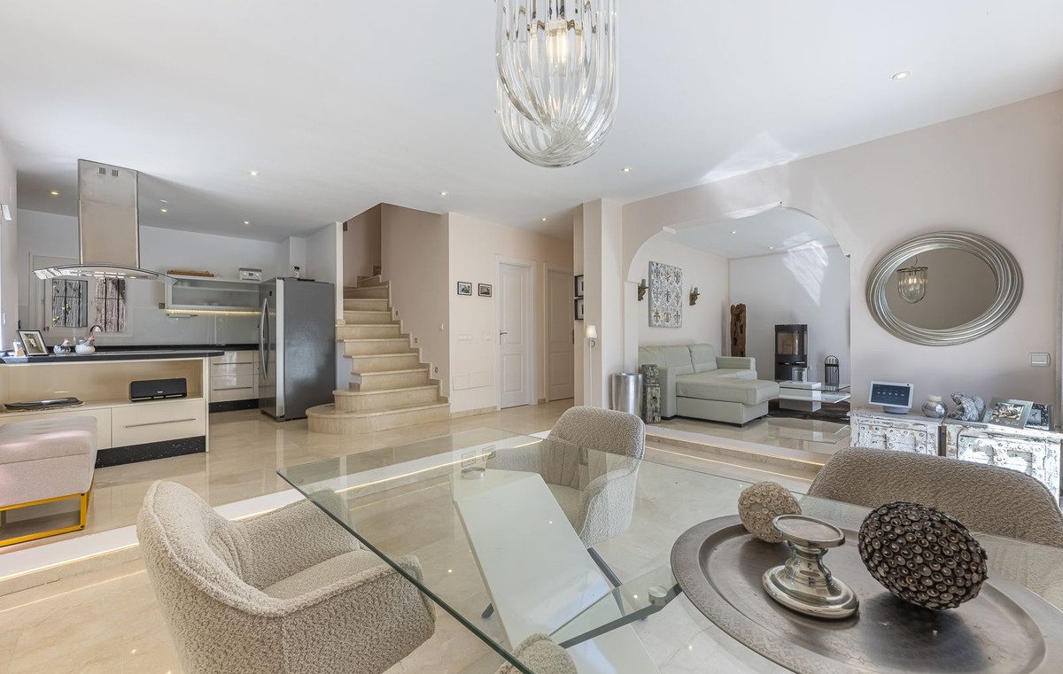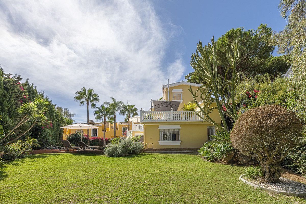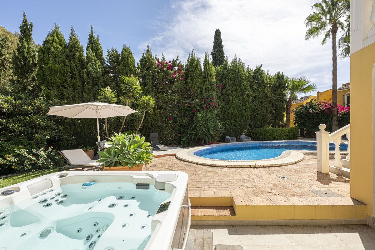 Impresionante villa a solo 1.200 metros de la playa en Calahonda / Mijas CostaEsta espectacular villa se encuentra en un entorno tranquilo e idílico, pero a tan solo unos minutos a pie de restaurantes, bares elegantes, tiendas y un centro médico. Ofreciendo un estilo de vida excepcional, esta propiedad es una joya escondida: combina amplias zonas exteriores y un ambiente de lujo con una ubicación privilegiada en Calahonda, entre La Cala de Mijas y Marbella, y muy cerca del puerto deportivo de Cabopino y sus hermosas dunas.La villa ofrece aprox. 123 m² en la planta baja y 63 m² en la planta superior, con un total de aprox. 186 m² de superficie habitable, además de amplias terrazas.Entre sus acabados de alta calidad destacan: calefacción por suelo radiante en los baños, piscina climatizada con bomba de calor, jacuzzi, sistema fotovoltaico (solar) y chimenea.En el interior encontrará un espacio luminoso y amplio, con una distribución excelente diseñada para la relajación y el disfrute. El corazón de la vivienda es el gran salón-comedor de planta abierta, con ventanales de suelo a techo que inundan el espacio de luz natural y ofrecen acceso directo a las terrazas que rodean la casa. La cocina, totalmente equipada, es funcional y acogedora, con amplias superficies de trabajo y mucho espacio de almacenamiento.La villa dispone de 4 dormitorios y 4 baños, garantizando privacidad y confort tanto para la familia como para los invitados, además de un cuarto de baño adicional para visitas.Las zonas exteriores son el gran atractivo de esta propiedad. La piscina climatizada se puede disfrutar durante todo el año, mientras que el bar junto a la piscina y las amplias terrazas ofrecen el marco perfecto para reuniones, tomar el sol o simplemente disfrutar de la tranquilidad del entorno. Los frondosos jardines que rodean la casa crean un refugio privado ideal.Un gran aparcamiento cubierto completa este magnífico conjunto.A pesar de la privacidad, la villa goza de una excelente accesibilidad. Tiendas, cafés y restaurantes locales se encuentran a pocos minutos, y el transporte público está cerca, con una línea de autobús que conecta fácilmente con los pueblos y localidades costeras cercanas.La playa está a unos 1.200 metros a pie, con arena dorada, chiringuitos y una amplia oferta de deportes acuáticos. Campos de golf, colegios internacionales, centros médicos y todos los servicios diarios también están próximos. Marbella, La Cala de Mijas y Fuengirola se encuentran a tan solo 10–15 minutos en coche, lo que convierte a esta villa en la base perfecta para explorar y disfrutar de la Costa del Sol.~