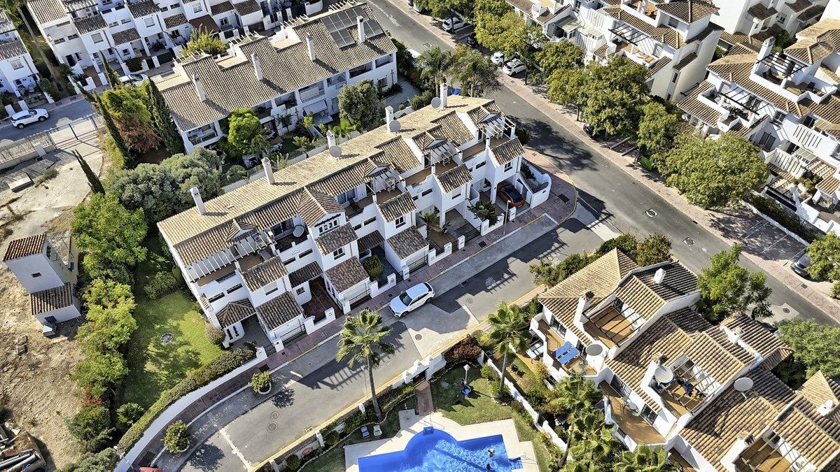 Se permiten alquileres de corta temporada en la comunidad.Nueva en el mercado – Ubicada en la codiciada comunidad de Los Naranjos de Marbella, esta elegante casa adosada de 6 dormitorios y 4 baños ofrece un amplio espacio habitable y una ubicación conveniente.La propiedad se encuentra a solo cinco minutos en coche o 25 minutos a pie del famoso puerto deportivo de Puerto Banús y a solo unos minutos en coche del casco antiguo de Marbella. Los servicios básicos están cerca, con un supermercado Mercadona dentro de la comunidad y una parada de autobús a solo un minuto.En la planta baja, se encuentra un amplio y luminoso salón-comedor con chimenea que da directamente a un amplio patio exterior recientemente renovado. Esta zona es ideal para disfrutar del sol o cenar al aire libre. La cocina está totalmente equipada y tiene acceso directo a un lavadero. También en esta planta hay una habitación de invitados independiente con su propia cocina americana, baño y entrada independiente, lo que ofrece el potencial de generar ingresos adicionales por alquiler.La primera planta cuenta con tres amplios dormitorios, uno de ellos con baño en suite. Tanto el dormitorio con baño en suite como el segundo dormitorio dan a una terraza compartida con vistas al patio y a la montaña. El baño familiar está equipado con jacuzzi/bañera de hidromasaje con iluminación interior y altavoz Bluetooth integrado, lo que añade un toque extra de comodidad. En la segunda planta, hay otro dormitorio con baño en suite, así como un sexto dormitorio, actualmente utilizado como despacho, con capacidad para una cama doble o dos individuales.Otras características incluyen suelos de mármol, aire acondicionado en todas las habitaciones y wifi de fibra óptica de alta velocidad. La propiedad se encuentra en una calle tranquila dentro de una urbanización de tan solo cinco casas, lo que ofrece tranquilidad y privacidad. La urbanización cuenta con varias piscinas comunitarias, incluyendo una justo enfrente de la casa y otra a tan solo 100 metros.Esta casa adosada ofrece una distribución práctica, espacios versátiles y una ubicación privilegiada, lo que la convierte en una excelente opción como residencia permanente, casa de vacaciones o inversión para alquiler.~