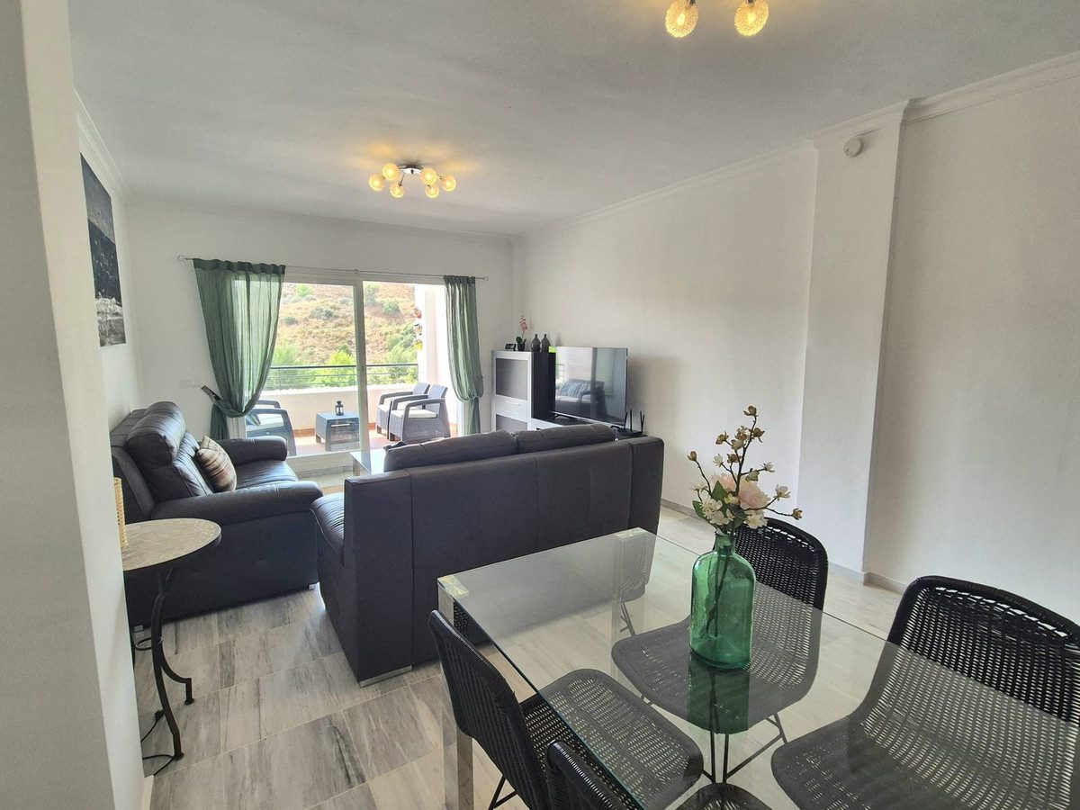 No podemos ver el apartamento hasta 21 de enero 2026Fantástico apartamento en planta baja elevada listo para mudarse, con bonitas vistas a la piscina y a las montañas en Alhaurín Golf.La propiedad está ubicada en Las Brisas, detrás de la casa club de golf; puedes entrar desde el nivel de la calle a través de varias puertas de portales a su portal individual o mediante el garaje utilizando el ascensor o las escaleras hasta la planta baja. Entras al piso a través de un amplio vestíbulo, a la izquierda tienes la cocina completamente equipada con todos los electrodomésticos nuevos y una caldera nueva, al frente está el comedor/salón con aire acondicionado nuevo en todas la habitaciones, y desde aquí puedes acceder a la terraza, donde tienes unas fantásticas vistas a la piscina, a la montaña y al golf. Volviendo al vestíbulo, por el pasillo tienes 2 dormitorios dobles con armarios empotrados y 2 baños completos, uno con ducha y el otro es en suite con bañera/ducha combinada y lavabos dobles. El dormitorio principal también tiene un balcón Julieta. Los muebles están incluidos en el precio, menos efectos personales; además, la propiedad viene con una plaza de garaje. La comunidad cuenta con bonitos jardines maduros y bien cuidados, así como 2 piscinas comunitarias. Es una visita obligada, un video está disponible.Se puede caminar hasta la casa club donde hay una cafetería/restaurante para disfrutar, un estudio de pilates y ofrecen entretenimiento regular durante todo el año. Puedes conducir hasta Alhaurín el Grande, lo que te tomaría aproximadamente 5 minutos; el aeropuerto de Málaga y las playas están a solo 20 minutos en coche.~